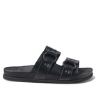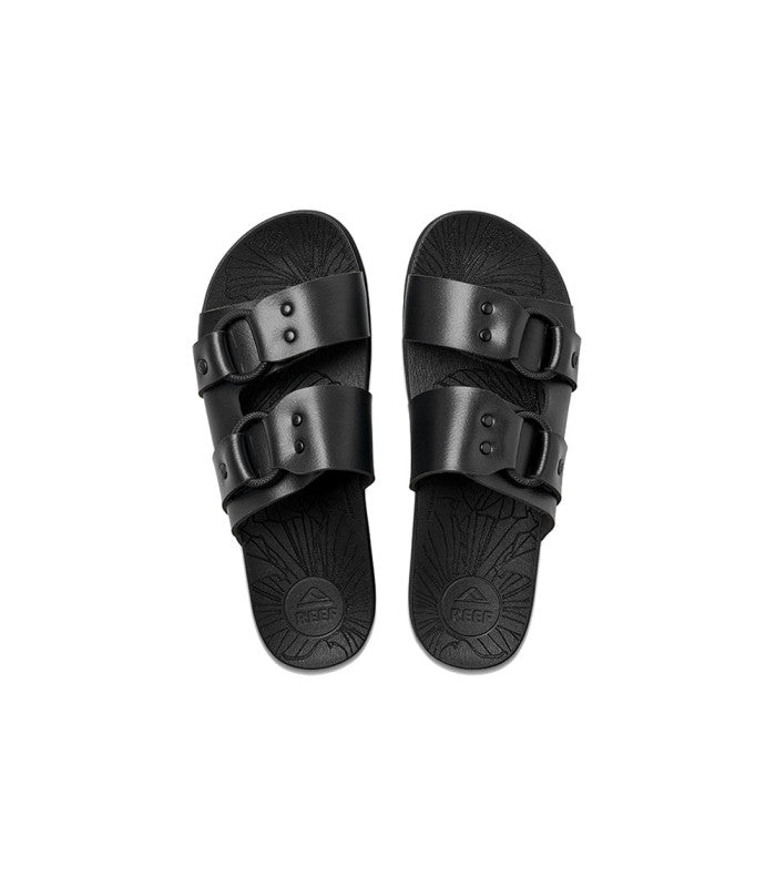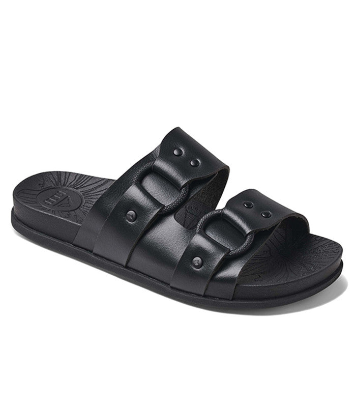 With nature- inspired details and soft vegan leather straps in a classic two- bar buckled design, this sandal will serve you from day to night in easy, casual chic style.UPPER Super soft unlined PVC Free vegan leather two strap slide with faux raffia molded buckles and recycled hardware detail FOOTBED Our most comfortable footbed featuring the perfect blend of cushion and rebound support.