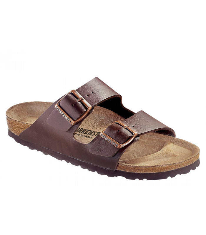 - Anatomically shaped cork-latex footbedn- Upper: Birko-Flor?n- Footbed lining: sueden- Sole: EVAn- Details: two straps, each with an individually adjustable metal pin bucklen- Made in GermanyThe BIRKENSTOCK Arizona is a genuine classic that has been delighting both men and women for decades.