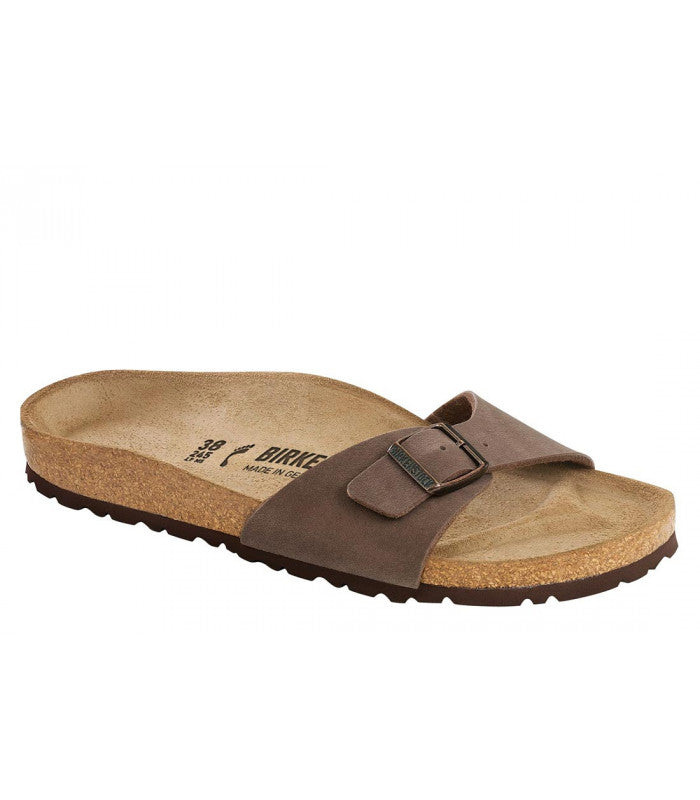 - Anatomically shaped cork-latex footbedn- Upper: Birko-Flor? nubuckn- Footbed lining: sueden- Sole: EVAn- Details: one strap with an individually adjustable metal pin bucklen- Made in GermanyThe BIRKENSTOCK Madrid is the oldest member of the family of models, making it a veritable classic.