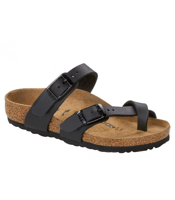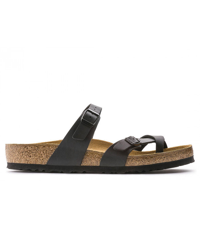 - Anatomically shaped cork-latex footbedn- Upper: Birko-Flor?n- Footbed lining: sueden- Sole: EVAn- Details: two straps, each with an individually adjustable metal pin buckle; toe loopn- Made in GermanyThe Mayari from BIRKENSTOCK - an elegantly comfortable sandal with adjustable, crisscrossing straps that form a single loop around the toe.
