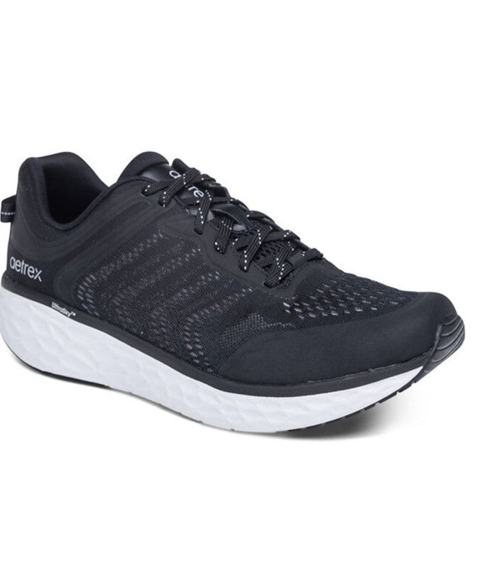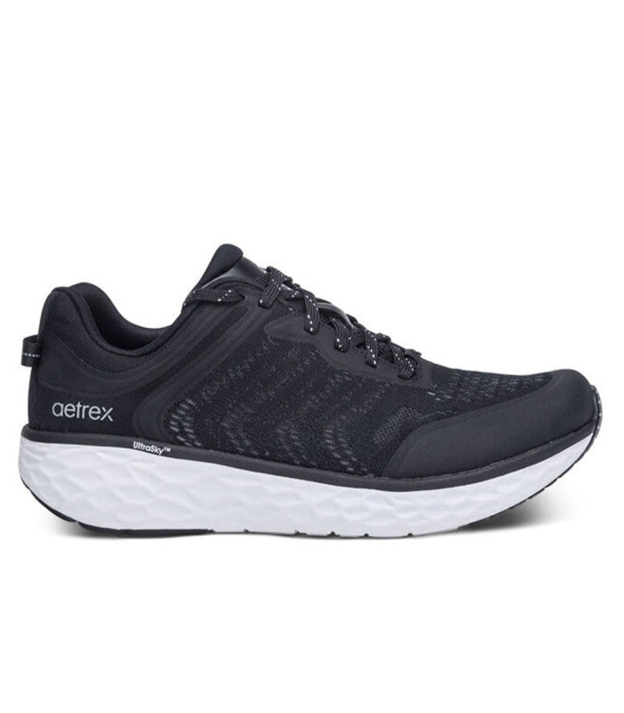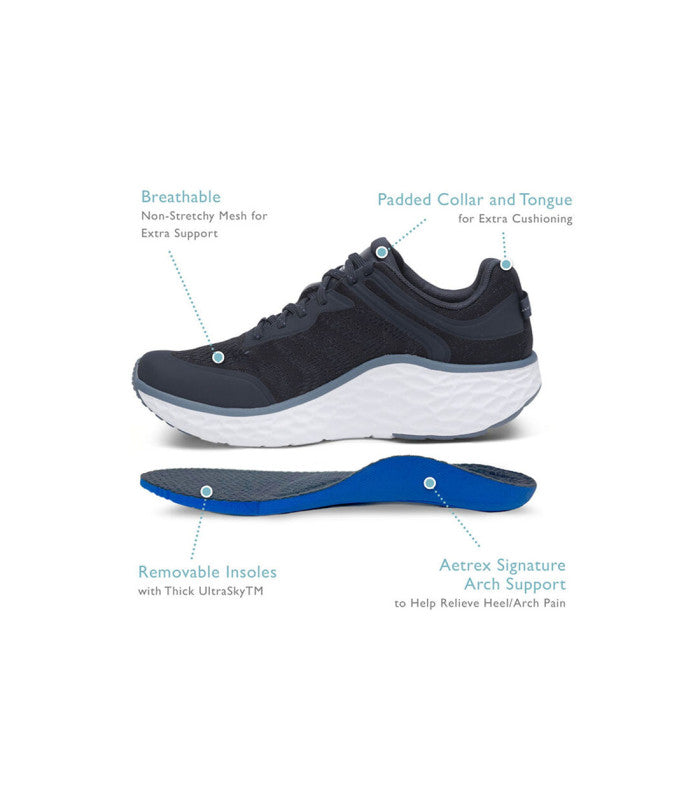 The Aetrex Orthotic System is Built- In to every pair: - Our insole features arch support that helps to stabilize your body, align your feet and relieve common foot pain (ie.plantar fasciitis, heel pain & arch pain) - Our insole features UltraSky™ cushioning to provide pressure relief & comfort - Our insole is lined with microfiber treated with antimicrobial technology to help fight every day odors Details: - Adjustability: Laces - Upper Material: Mesh - Midsole Material: Lightweight UltraSky™ for comfort - Outsole Material: Rubber pods for durability - Removable Insole: Yes - Heel Height: 1.3" - Padded collar and tongue for extra cushioning - Machine washableSpend your active days in complete comfort with the Chase.