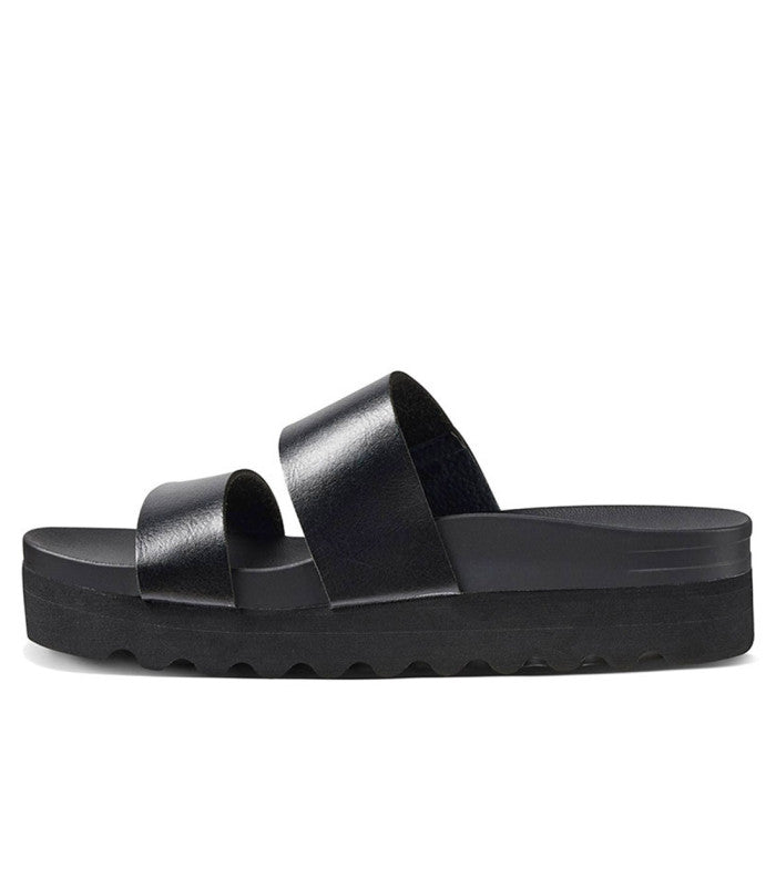 Same goes for you: Up top they’re a classic two.strap slide in vegan leather.