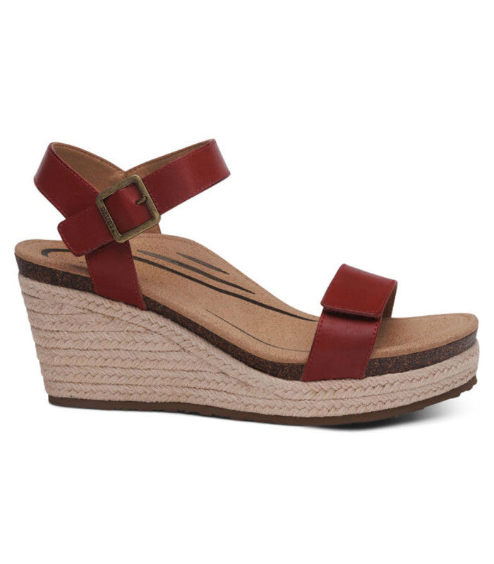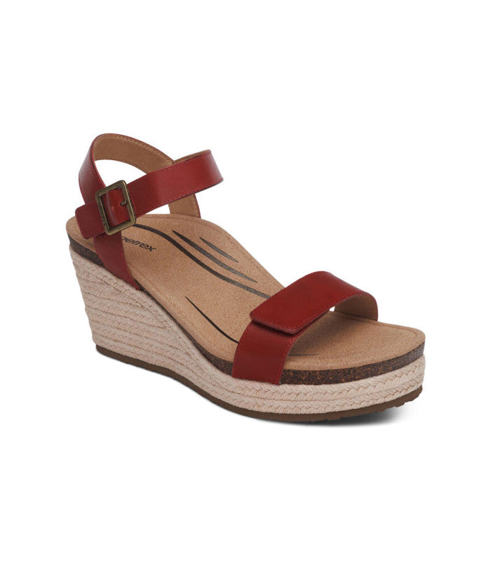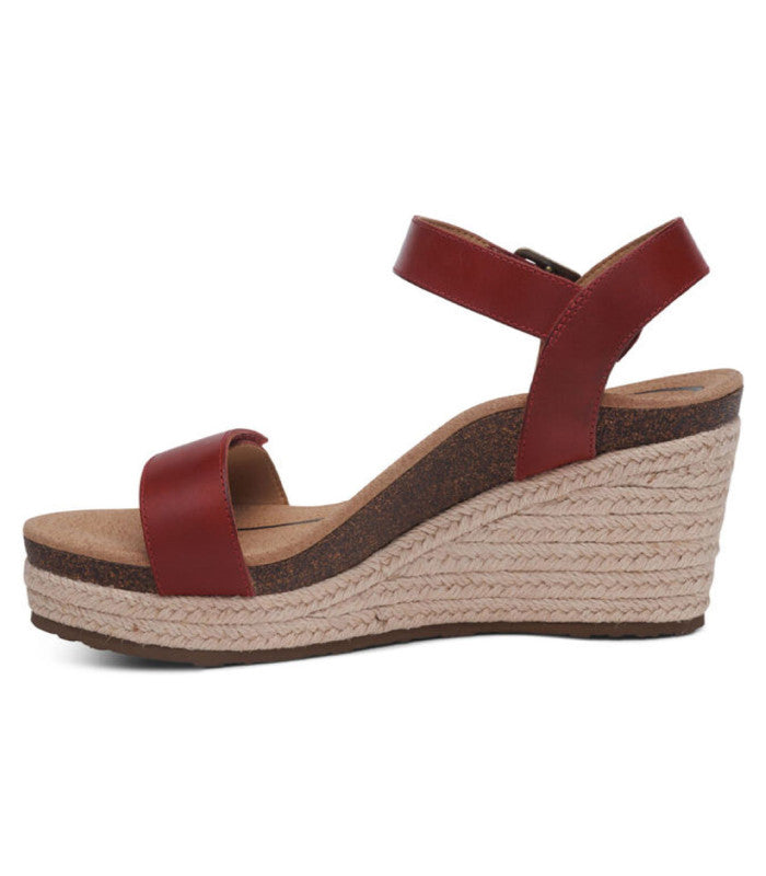 The Aetrex Cobra Orthotic System is Built- In to every pair: - Arch support helps to stabilize and align feet - Arch support helps to relieve common foot pain & plantar fasciitis - The memory foam footbed provides cushioning & comfort Details: - Adjustability: Hook & loop closures - Upper Material: Genuine leather - Midsole Material: 8mm of memory foam cushioning, lightweight cork and jute wrapped platform - Footbed Lining Material: Soft microfiber treated with antimicrobial technology to help fight every day odors - Outsole Material: Blown rubber for lightweight durability - Removable Insole: None - Heel Height: 3"Seize the summer day in the Sydney! This espadrille wedge is perfect for those who want a combination of comfort and style.
