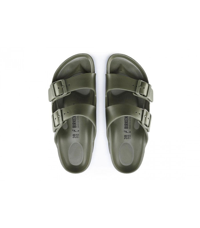 - Anatomically shaped BIRKENSTOCK footbed made from EVAn- Upper/lining/sole: one piece molded EVAn- Details: two straps, each with an individually adjustable metal tongue buckle; waterproof, ultra lightweightn- Made in GermanyThe legendary two-strap design from BIRKENSTOCK - the Arizona.