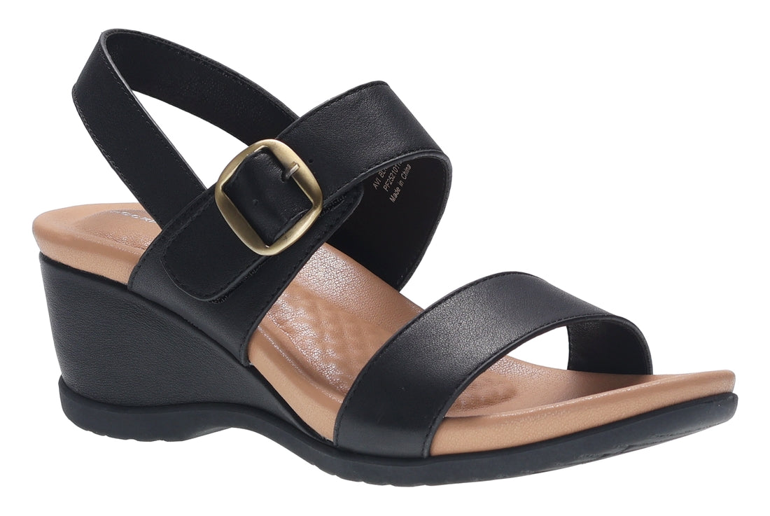 Featuring a decorative buckle strap with hidden Velcro for easy adjustment, this lightweight wedge offers a soft cushioned footbed that keeps every step comfortable.