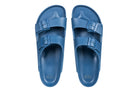 - One- piece molded sandal designed to have low environmental impact and minimal waste in production