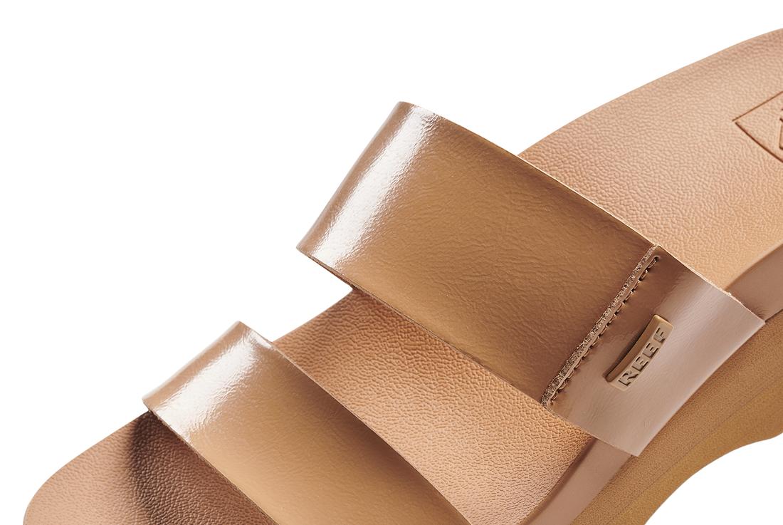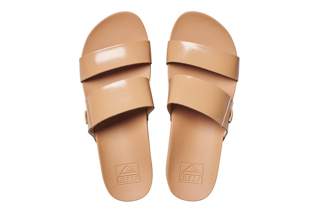 - Super soft unlined PVC Free vegan leather two strap slide.