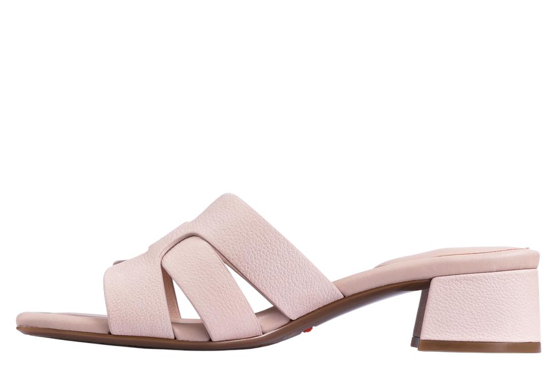 The Cain offers a block heel and an upper leather.