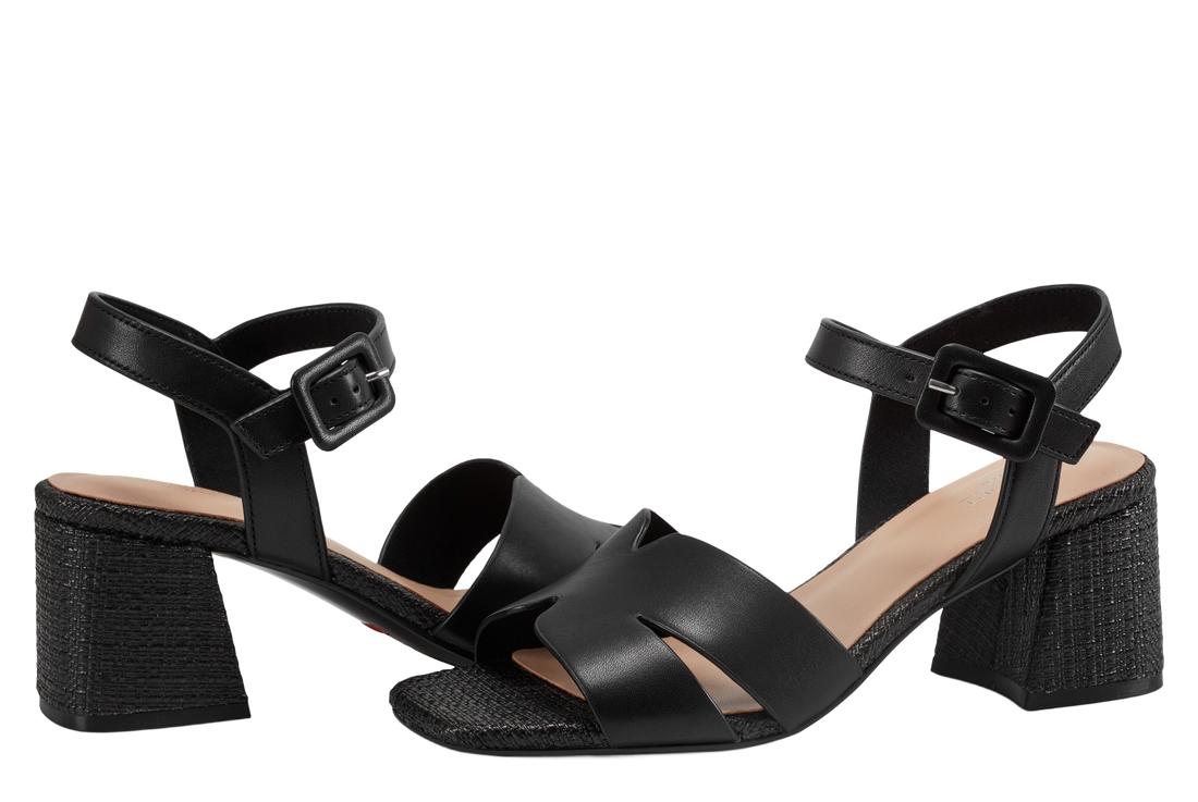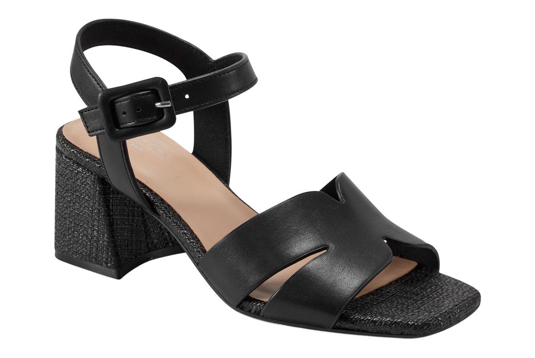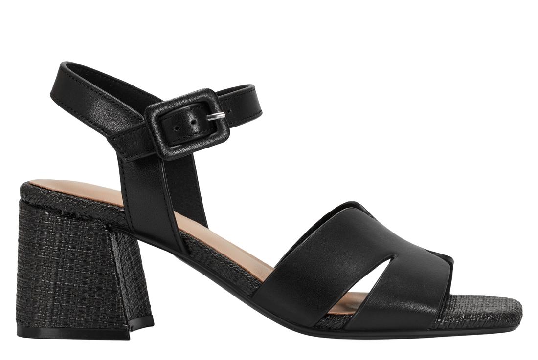 The Georje offers a block heel and an adjustable ankle strap.