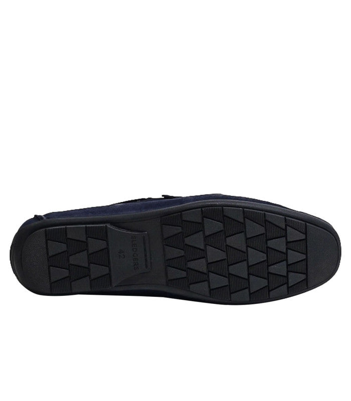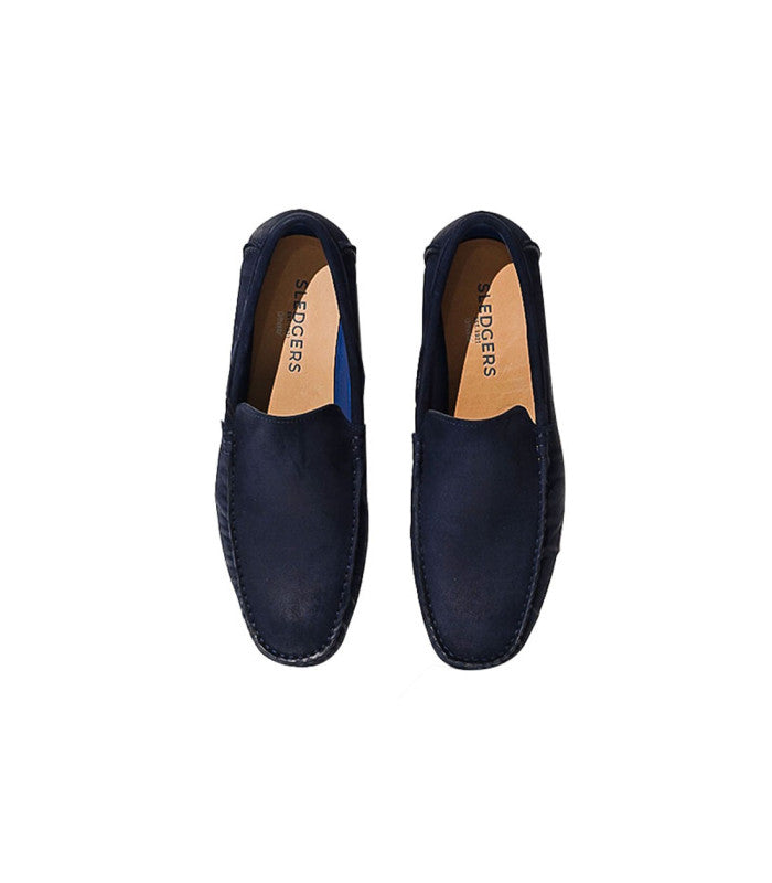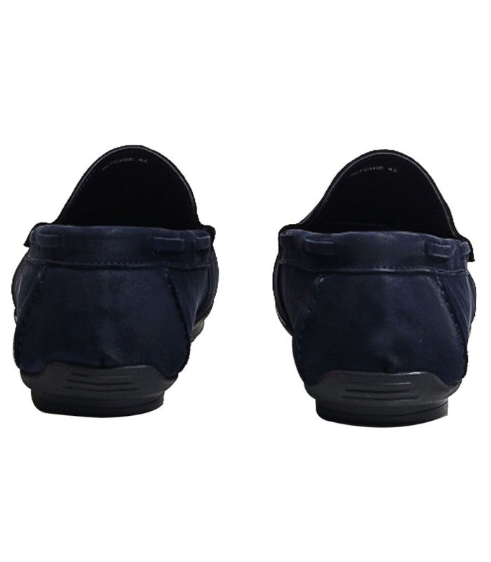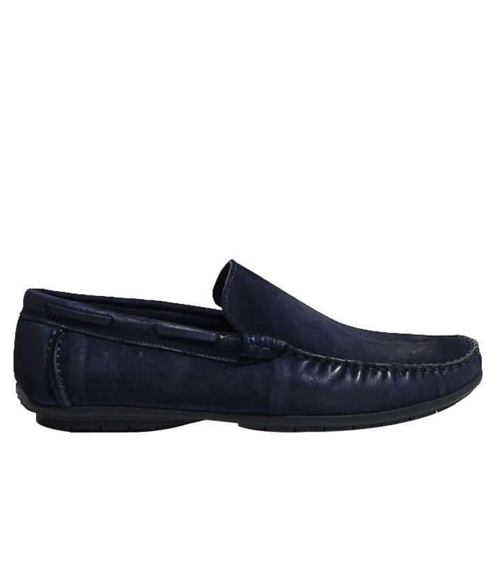 Tumbled square toe driving shoes dressed in deep blue for a casualncomfort.