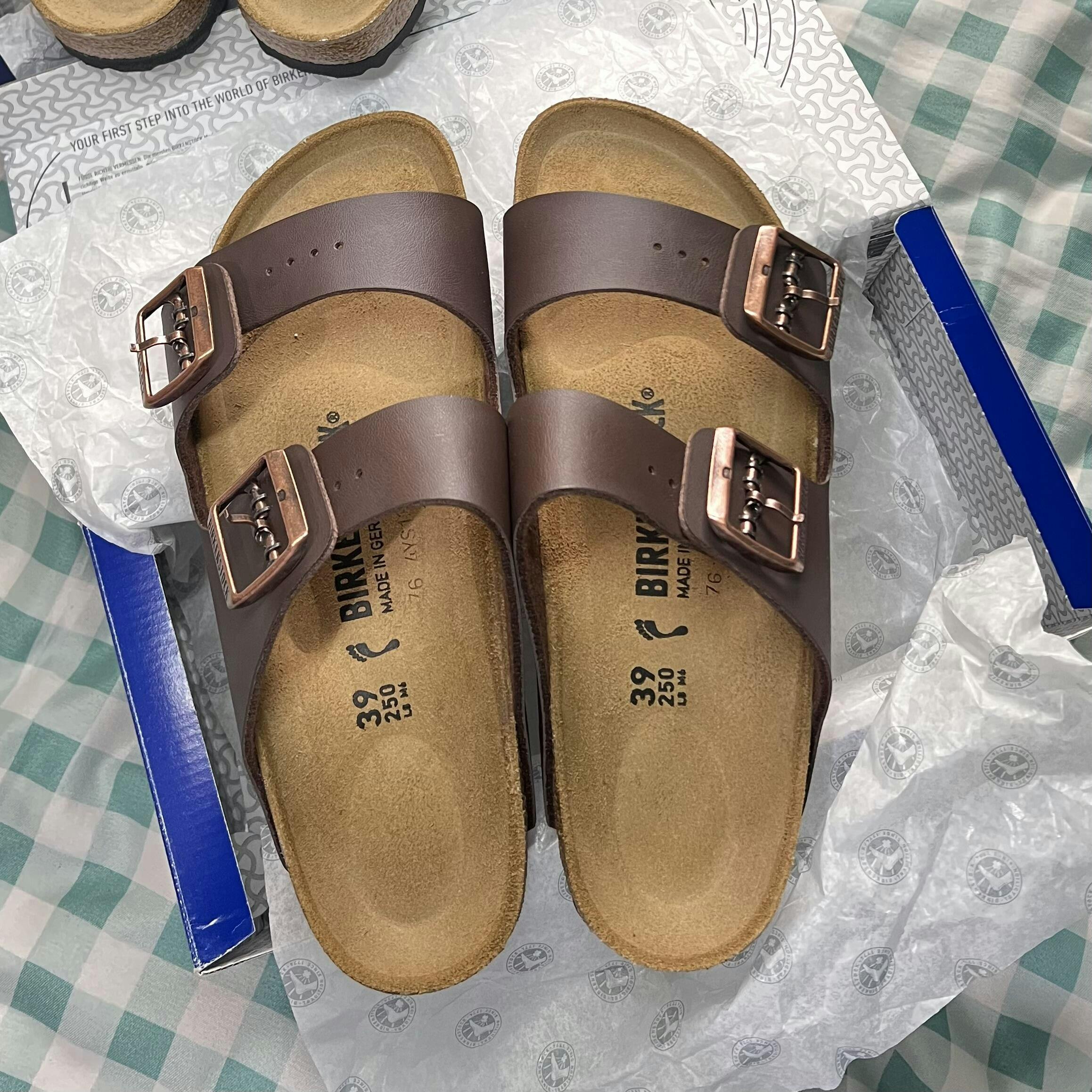 - Anatomically shaped cork-latex footbedn- Upper: Birko-Flor?n- Footbed lining: sueden- Sole: EVAn- Details: two straps, each with an individually adjustable metal pin bucklen- Made in GermanyThe BIRKENSTOCK Arizona is a genuine classic that has been delighting both men and women for decades.