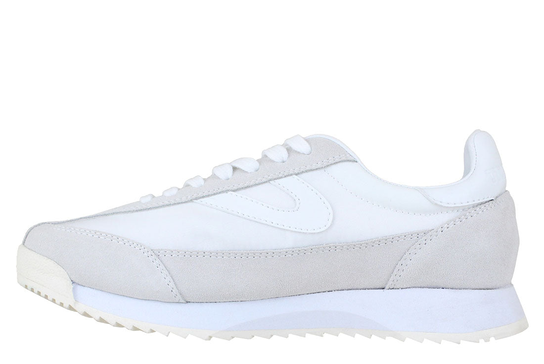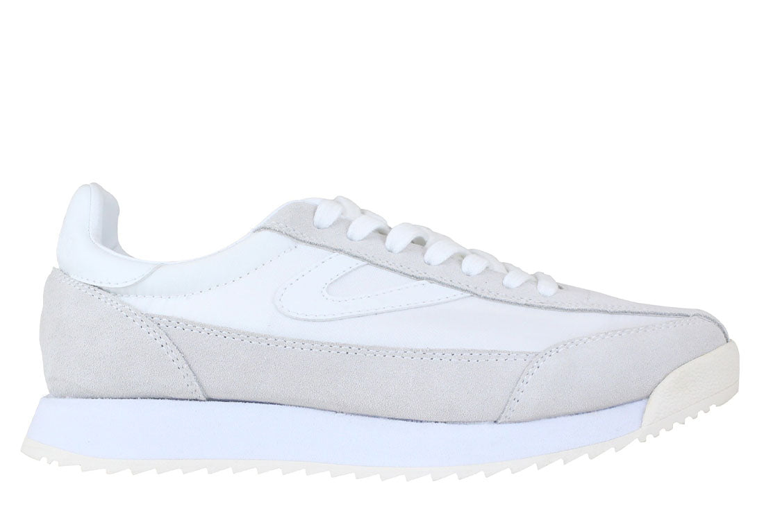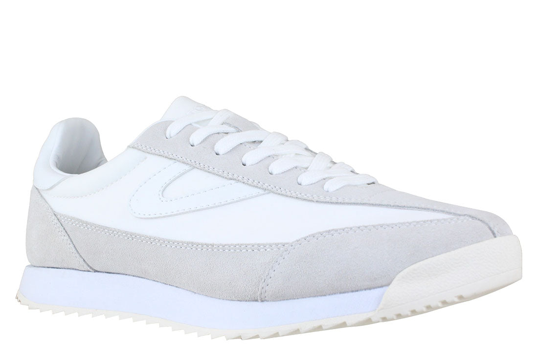You’ll be sporty & stylish, in these retro-inspired sneakers that are as comfortable as they are cool.- - Leather, Suede, and Textile Combo Uppern- Lace-up closure, laces includedn- Rubber outsole (50% natural gum rubber)n- EcoOrtholite insole (sustainably made with recycled material)
