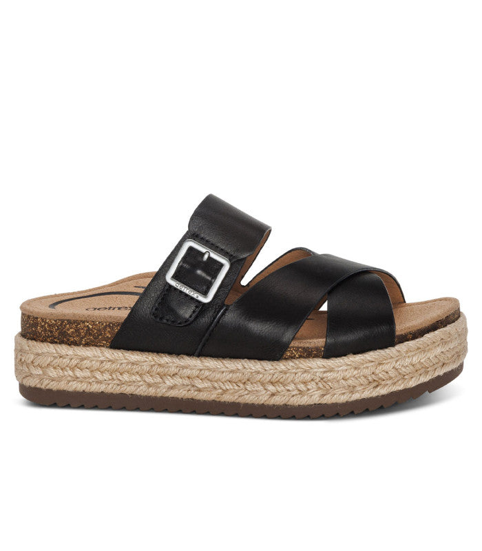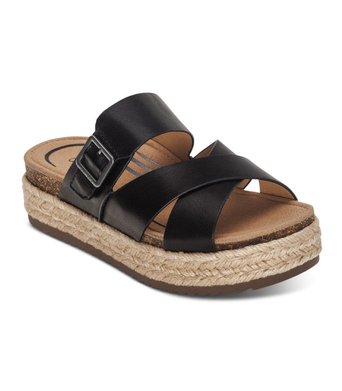 - Heel Height: 2"Slide into style with the Alyssa! This leather platform sandal is wrapped in jute and is a great edition to any warm weather outfit.