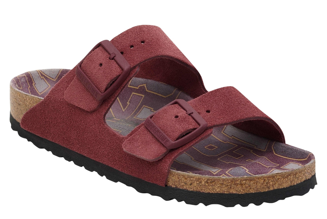 - Contoured cork footbed conforms to the shape of your foot and features pronounced arch support with a deep heel cup and roomy toe box; lined with suede {n}