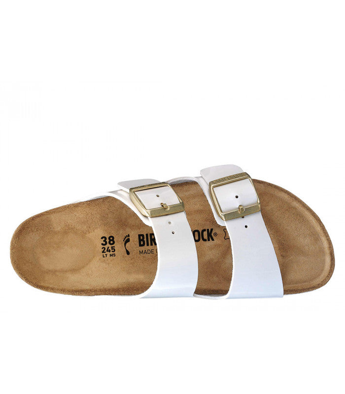Gender :Womens- Anatomically shaped cork-latex footbedn- Upper: Birko-Flor? patentn- Lining: patent leathern- Sole: EVAn- Details: strap with two individually adjustable metal pin bucklesn- ??ade in Germany??/p>The BIRKENSTOCK Arizona is a genuine classic.
