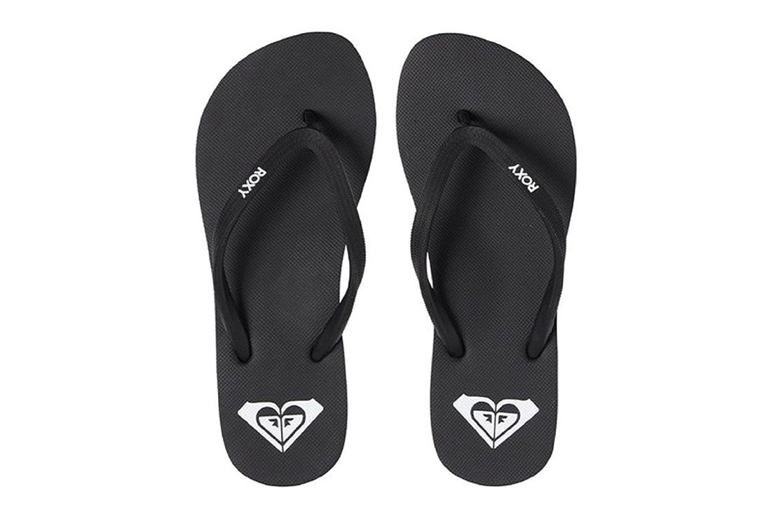 - Product Type: Sandaln - Upper: Soft textured rubber with molded Roxy scriptn - Footbed: Textured rubber footbed with medial arch support and graphic printn - Outsole: RubberFlip-flops for women featuring a TPU upper with metal ROXY pin, and a textured rubber footbed.