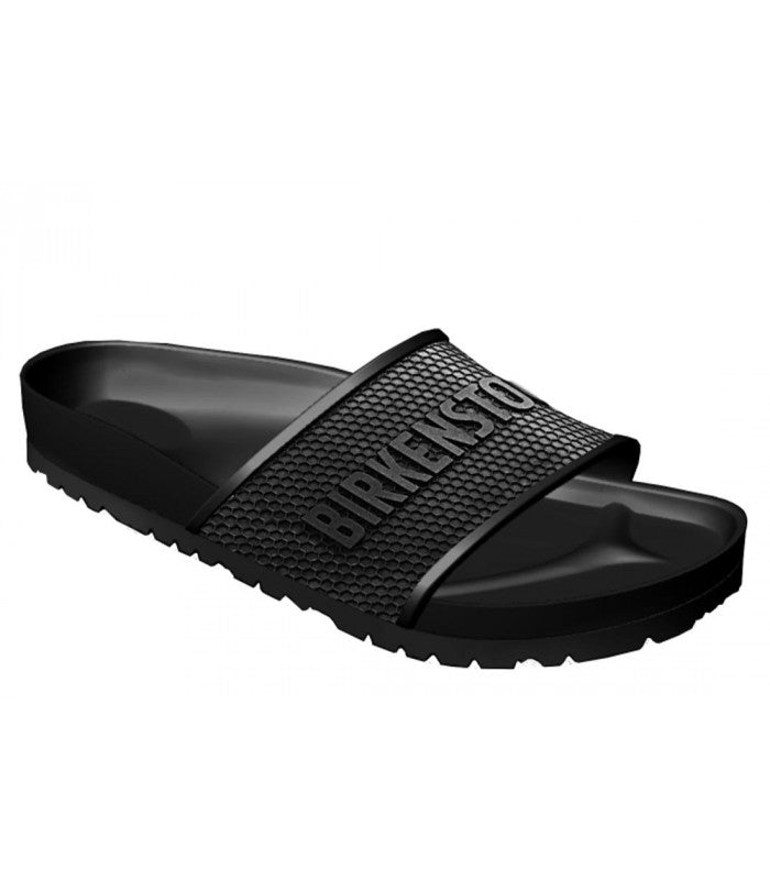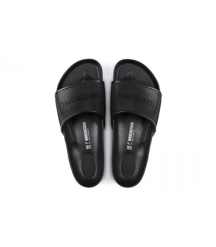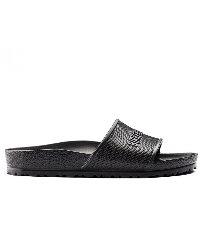 Gender :Mens- Anatomically shaped BIRKENSTOCK footbed made from EVAn- Upper/footbed lining/sole: molded single piece of EVAn- Details: waterproof, washable, ultra lightweightn- Made in GermanyThe BIRKENSTOCK Barbados is a sporty slide design with a hexagon pattern and logo lettering.