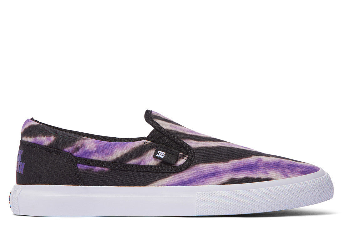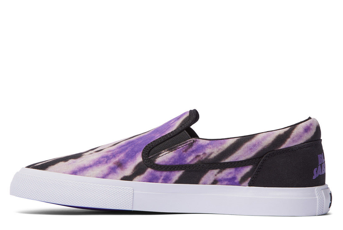 Gender :Mens- Upper: Specialty purple tie-dye canvas construction - Black Sabbath logo printed on heel - Deconstructed upper - Print of vintage band photo on insoles - IMPACT-ALG footbed provides cushioningDC x Black Sabbath Manual Slip is decked out in the custom, purple tie-dye print that we designed for the collection.