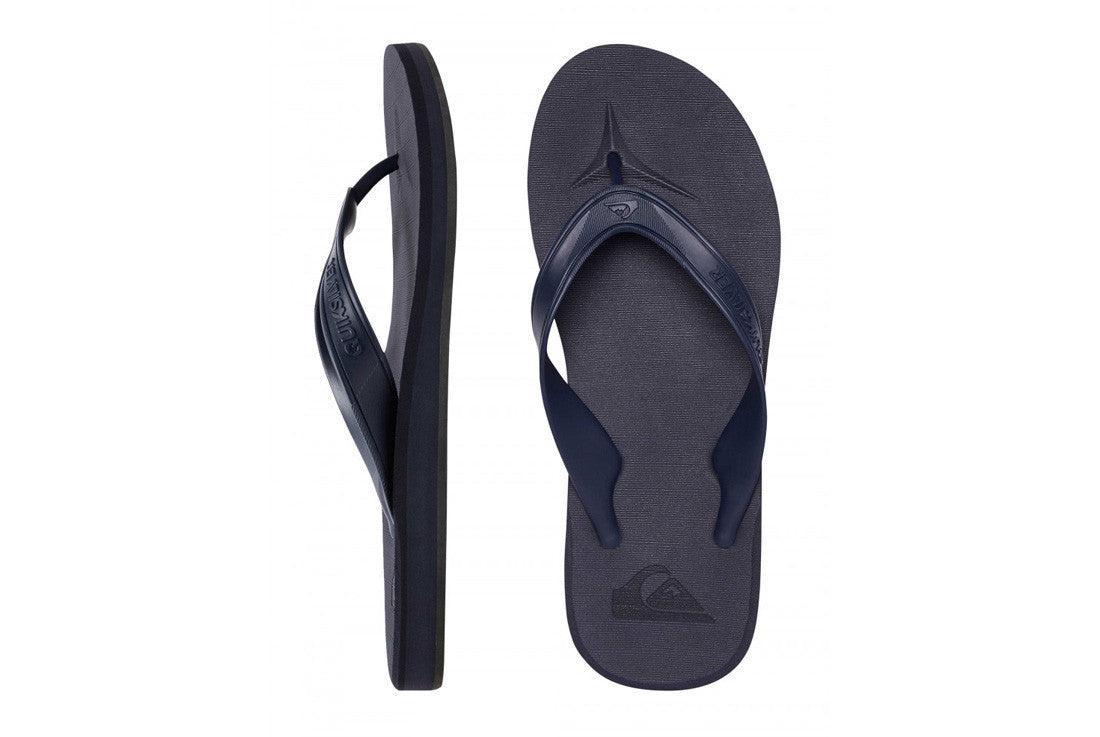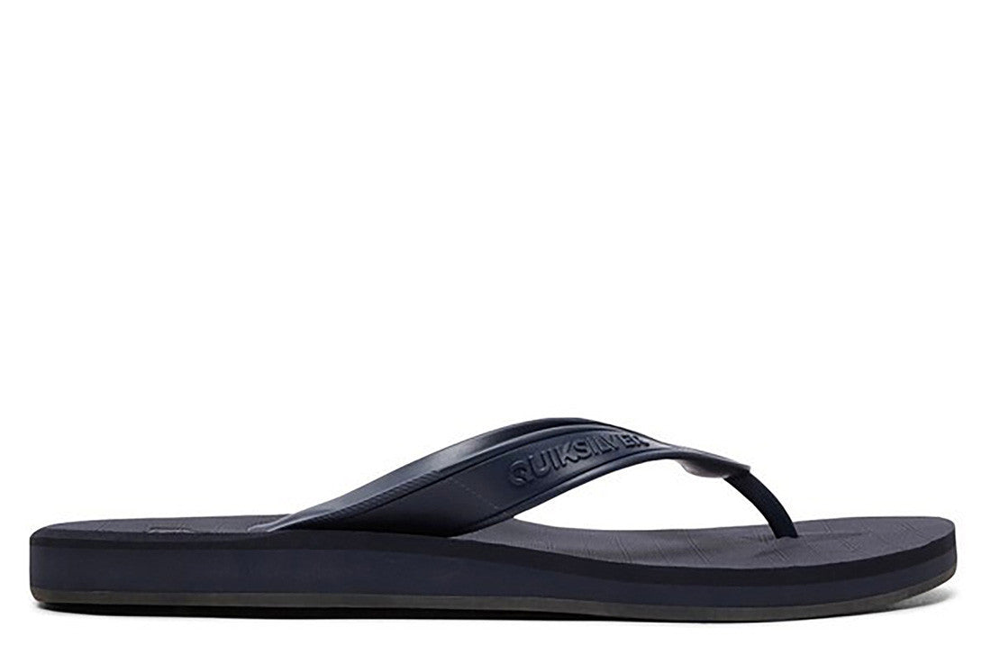 - Soft 5 point synthetic rubber strap with Quiksilver logo - Compression molded, textured footbed - Molded contour midsole with builtin arch, heel, and forefoot support - Gum rubber outsole incorporates multi angled logo lugs for added tractionFeaturing soft suede upper with contrast stitching, finely woven nylon toe post with herringbone texture, and rounded out with a compression-moulded, slip-resistant and textured EVA footbed.