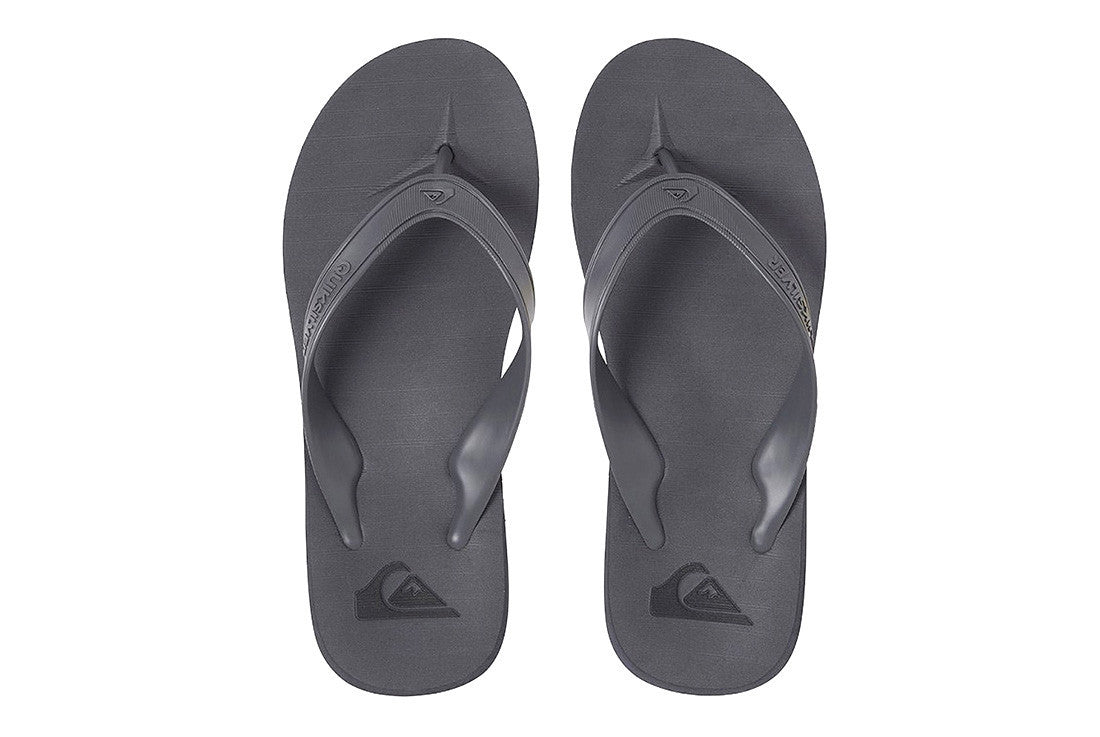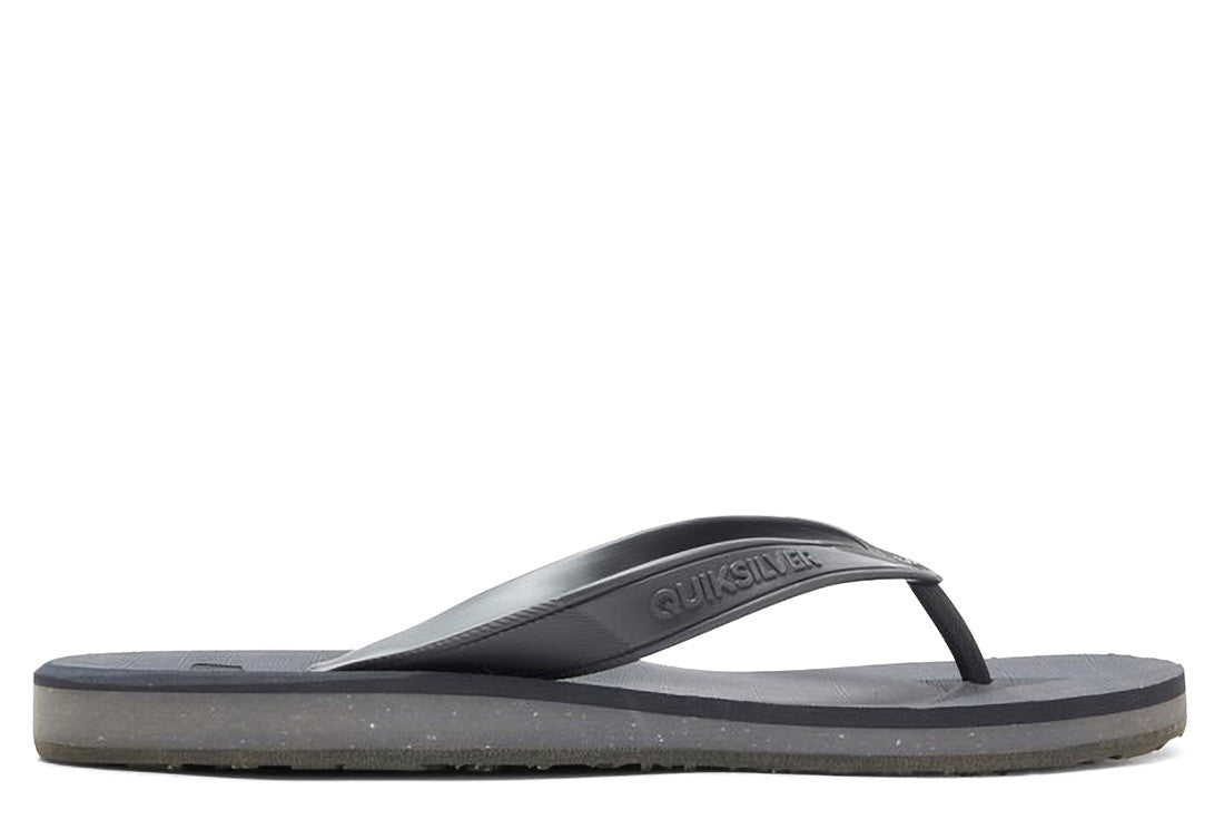 Gender :Mens- Soft 5 point synthetic rubber strap with Quiksilver logo - Compression molded, textured footbed - Molded contour midsole with builtin arch, heel, and forefoot support - Gum rubber outsole incorporates multi angled logo lugs for added tractionFeaturing soft suede upper with contrast stitching, finely woven nylon toe post with herringbone texture, and rounded out with a compression-moulded, slip-resistant and textured EVA footbed.