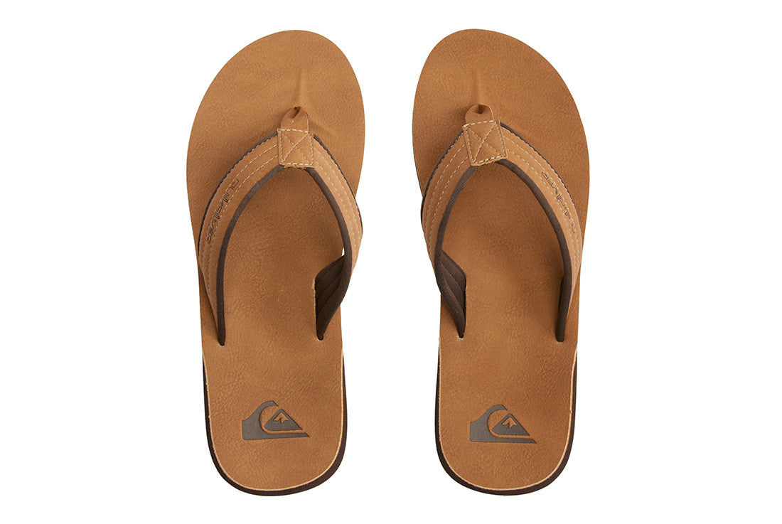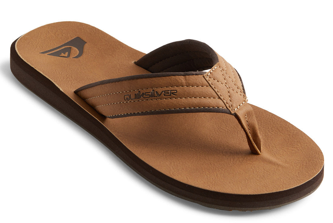 Gender :Mens Color :Multi- Soft 5 point synthetic rubber strap with Quiksilver logo - Compression molded, textured footbed - Molded contour midsole with builtin arch, heel, and forefoot support - Gum rubber outsole incorporates multi angled logo lugs for added tractionMens flip-flops fashioned with a soft 5-point synthetic rubber strap with Quiksilver logo, and a compression moulded and textured Eva footbed, and finished with a moulded contour midsole with built-in arch, heel and forefoot support.