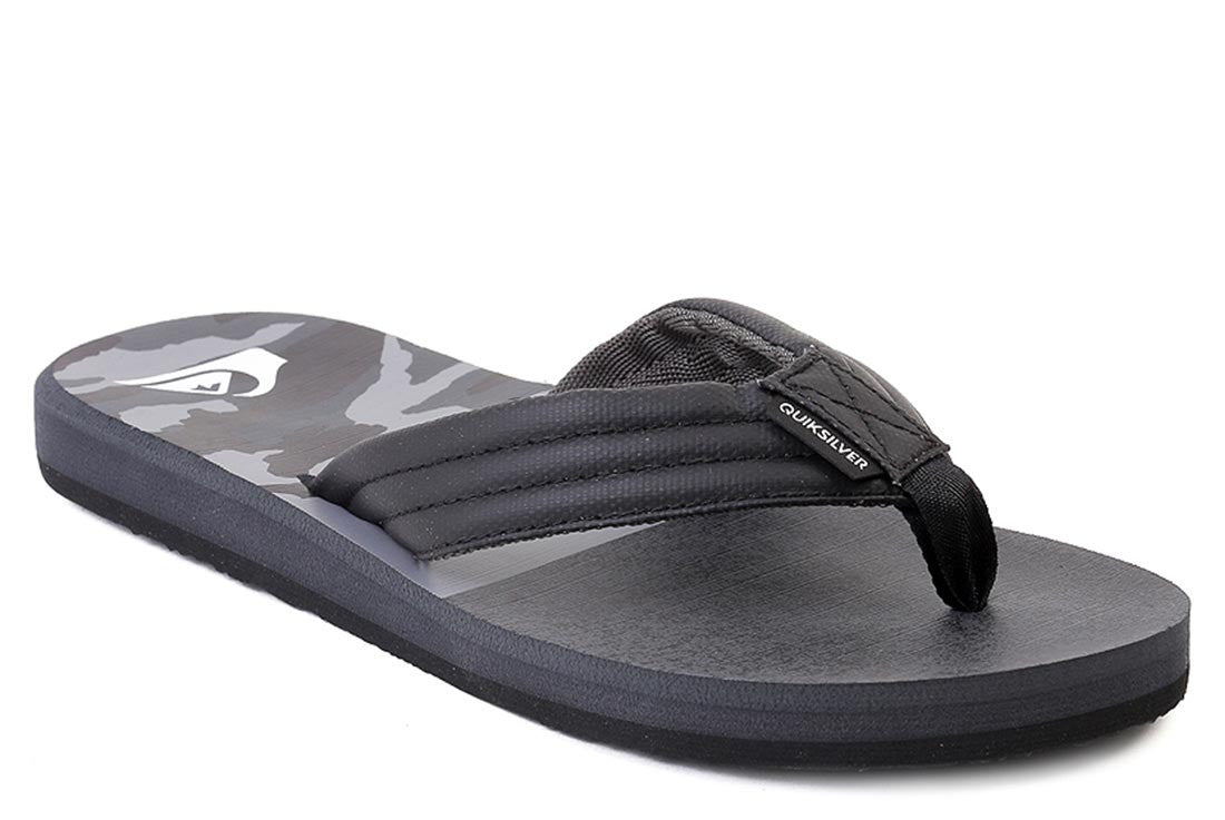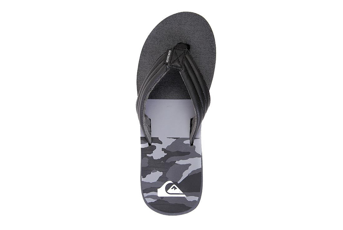- Soft 5 point synthetic rubber strap with Quiksilver logo - Compression molded, textured footbed - Molded contour midsole with builtin arch, heel, and forefoot support - Gum rubber outsole incorporates multi angled logo lugs for added tractionMens flip-flops fashioned with a soft 5-point synthetic rubber strap with Quiksilver logo, and a compression moulded and textured EVA footbed, and finished with a moulded contour midsole with built-in arch, heel and forefoot support.