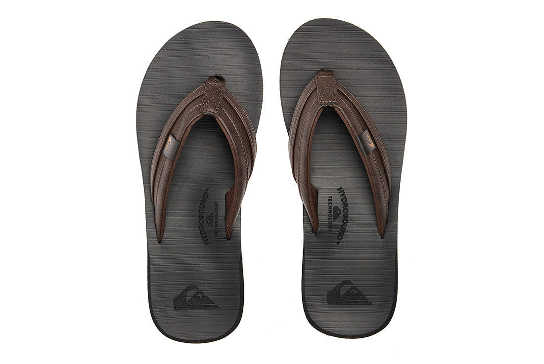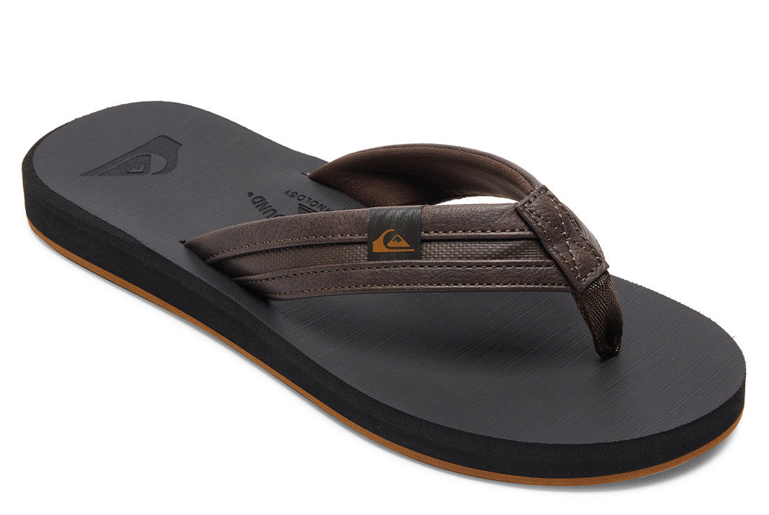 Gender :Mens Color :Multi- Soft 5 point synthetic rubber strap with Quiksilver logo - Compression molded, textured footbed - Molded contour midsole with builtin arch, heel, and forefoot support - Gum rubber outsole incorporates multi angled logo lugs for added tractionMens flip-flops fashioned with a soft 5-point synthetic rubber strap with Quiksilver logo, and a compression moulded and textured Eva footbed, and finished with a moulded contour midsole with built-in arch, heel and forefoot support.