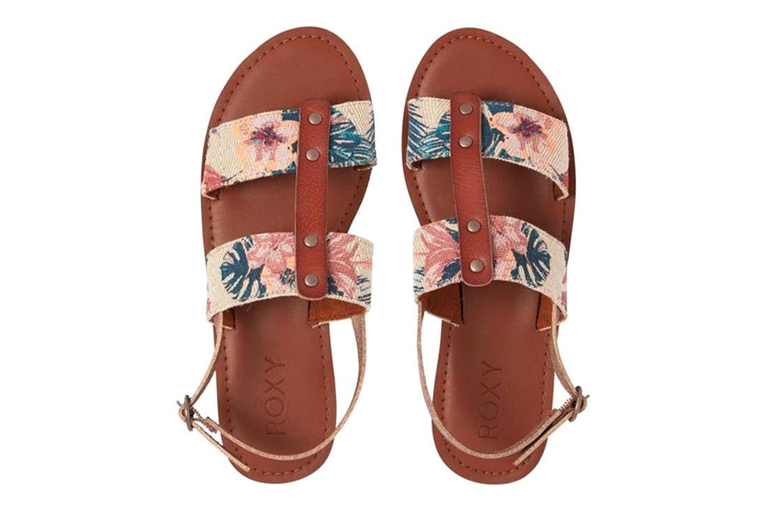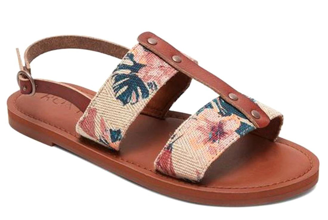 Gender :Womens- Rubber solen- Gladiator slingback sandaln- Elastic on instep for fitn- Burnished sock with embossed Roxy scriptWomens sandals featuring upper in faux leather upper, burnished sock with embossed Roxy script, and finished with a rubber outsole with heritage.