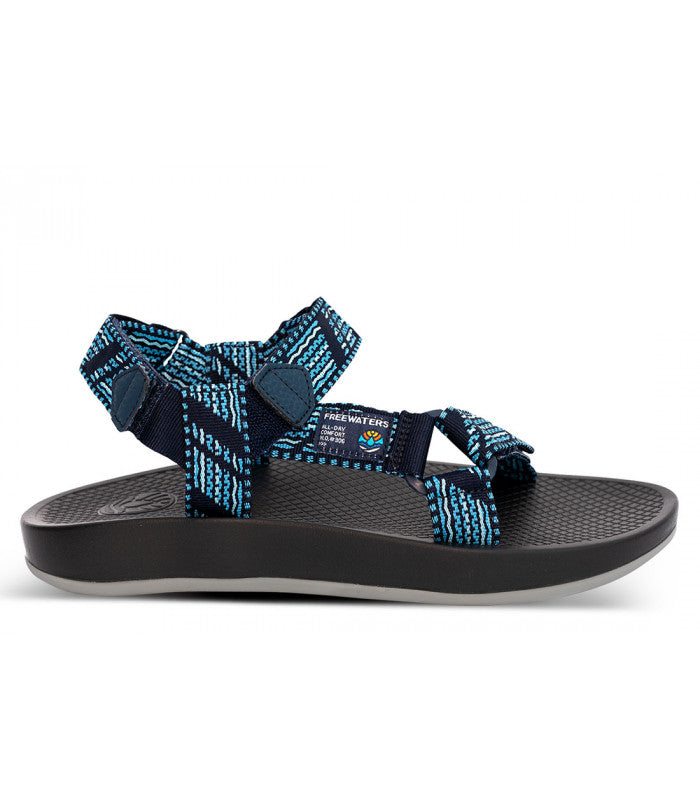 > Classic sport sandal style with 3 velcro cross straps for a custom fitn> Quick–dry 50% recycled polyester webbing straps with a redesigned geometric D-ring connector for no rub zonesn> Introducing our specially formulated Cloud9 footbed with happy arch supportn> 30% recycled rubber outsole for maximum grip and sustainability to bootn> 100% Vegan, Water-Friendly, cool water Machine Washablen> Each pair sold supports our global Clean Drinking Water ProjectsUltimate Comfort plush cloud-like suspensionnNEW Sport sandal with an innovative footbednA sandal for wherever your adventure takes younnOur revolutionary new footbed will have you walking tall with your head in the clouds as you float through your day on Cloud Nine.