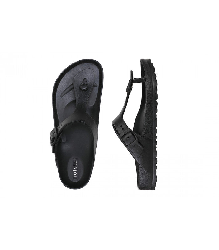 Gender :Womens- Podiatry features for optimal foot healthn - Contoured footbed with whole foot cushioningn - Lightweight, flexible & durablen - Arch support, toe-bar grip, Metatarsal dome & heel cradlen - Shock absorbent, non-slip outsolen - 100% waterproof EVA foam technologyn - Adjustable bucklesn - Vegan friendlyPoolside days and moonlit nights call for an easy, slip-on, versatile holster shoe.