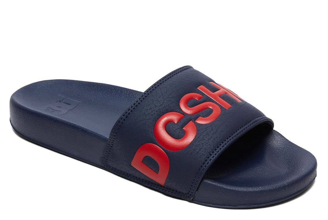 - Faux leather uppern- Comfortable and durable EVA materialn- Tread in Pill Pattern designDC Slide Sliders - Slider sandals for men designed with a faux leather upper and a comfortable and durable EVA material.