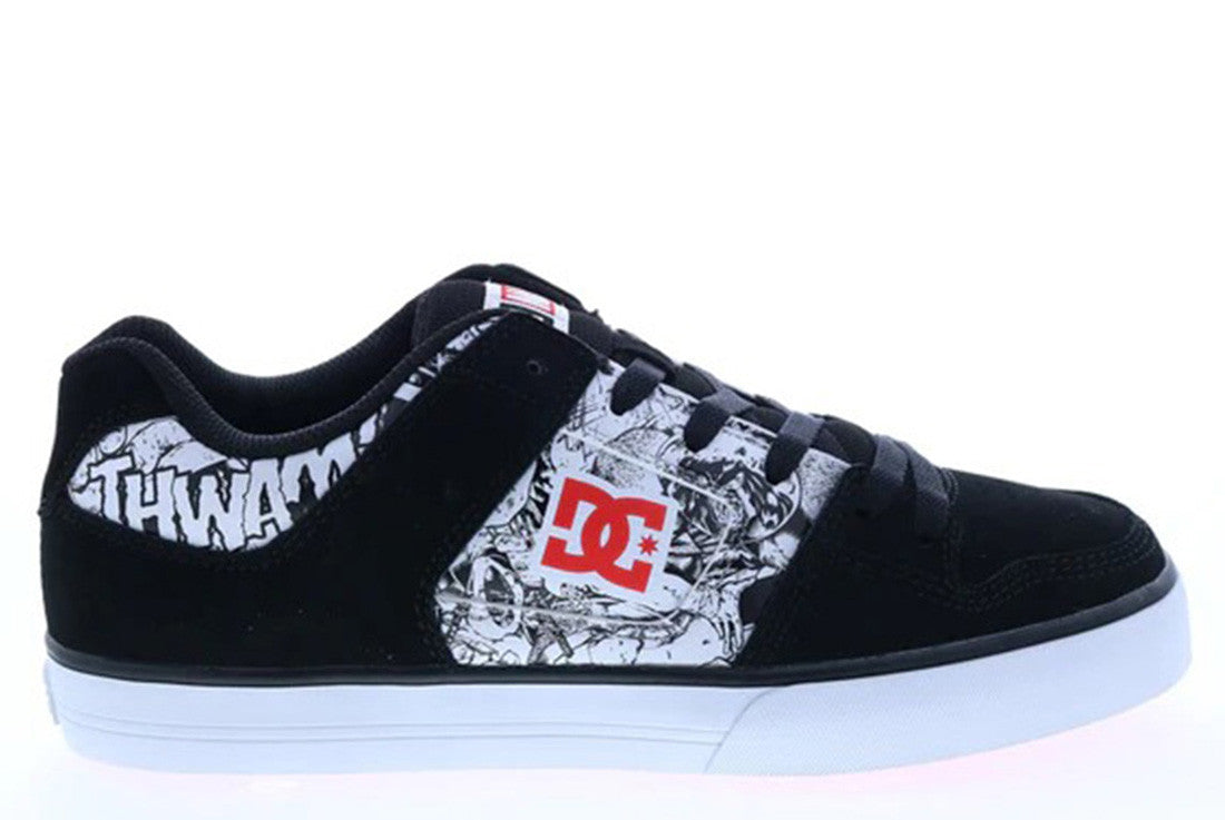 - Collection: Marvel Deadpool x DC Shoes - Upper: Nubuck and Leather Upper Materials - Screen Printed Deadpool Comic Art on Quarter - Tongue and Collar: Foam Padded Tongue and Collar for Comfort and Support - Feature: Vent Holes for Breathability - Footbed/Insole: Sublimated Graphic Insole - Outsole: DCs Trademark PILL PATTERN™ Tread PatternBlack and white with a splash of red, just like Deadpool would want ‘em.