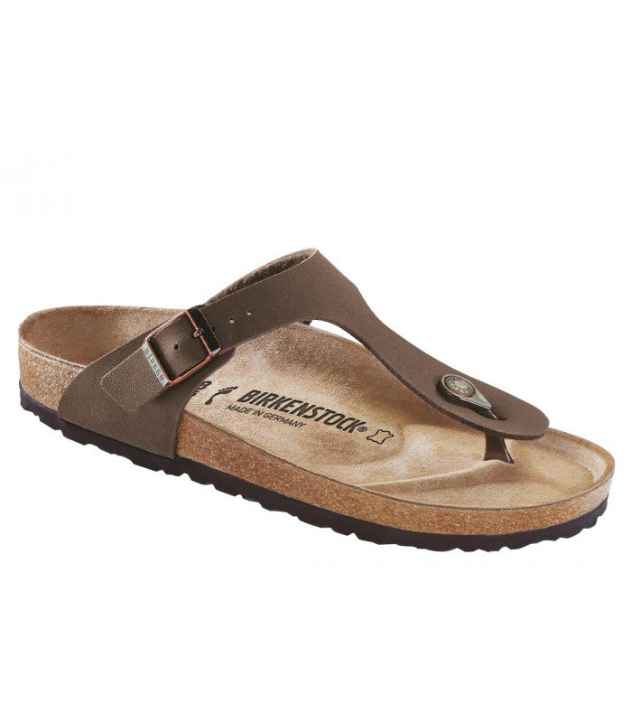 Gender :Womens- Anatomically shaped cork-latex footbedn- Upper: Birko-Flor? nubuckn- Footbed lining: sueden- Sole: EVAn- Details: thong with an individually adjustable metal pin bucklen- Made in GermanyThe BIRKENSTOCK Gizeh is a genuine classic and a stylish all-rounder.