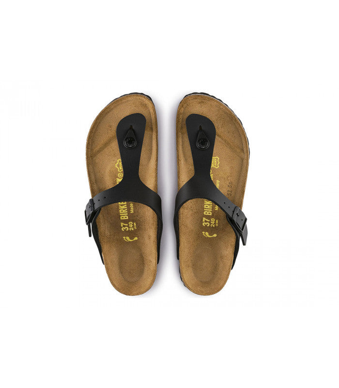- Made in Germanyn- Birko-Flor? ??durable, synthetic upper material with leather-like finish and soft backingn- Contoured cork footbed conforms to the shape of your foot and features pronounced arch support, a deep heel cup, and roomy toe box; lined with sueden- Lightweight EVA sole for cushioning and shock absorptionn- Avoid extreme heatThe modern thong sandal from Birkenstock.