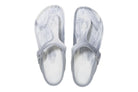 - Contoured footbed conforms to the shape of your foot and features pronounced arch support, a deep heel cup, and roomy toe box