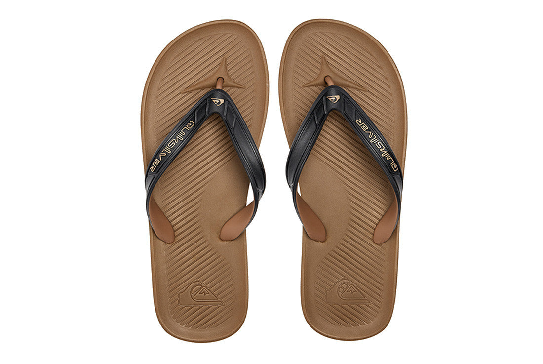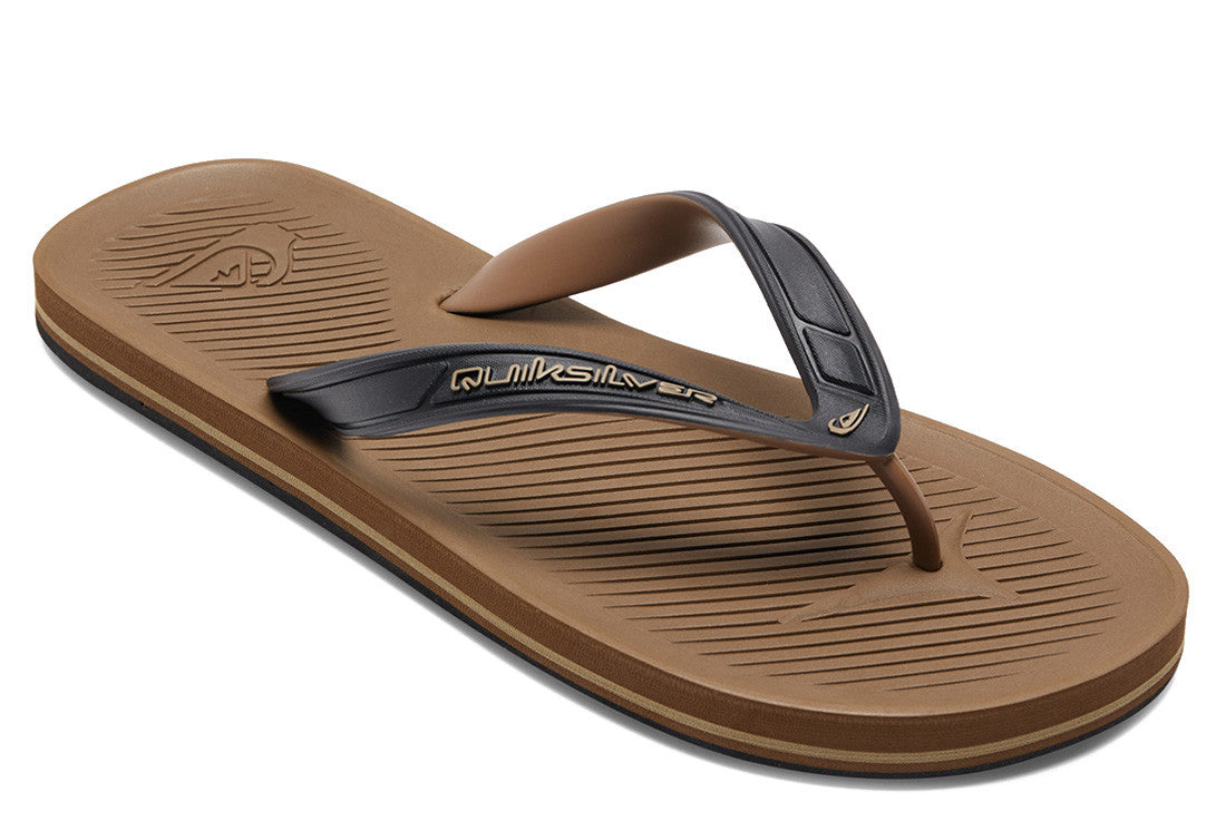 - Flexible, dual color, 3 point synthetic rubber strap with Quiksilver logos - Soft Hydrobound™ molded footbed with anatomically correct arch support and angled grooves for traction and ventilation - Engineered blown rubber outsole incorporates multi angled logo lugs for added traction Featuring flexible dual-colour 3-point synthetic rubber strap with Quiksilver logos, soft Hydrobound™ moulded footbed, and rounded out with anatomically correct arch support and angled grooves for traction and ventilation.