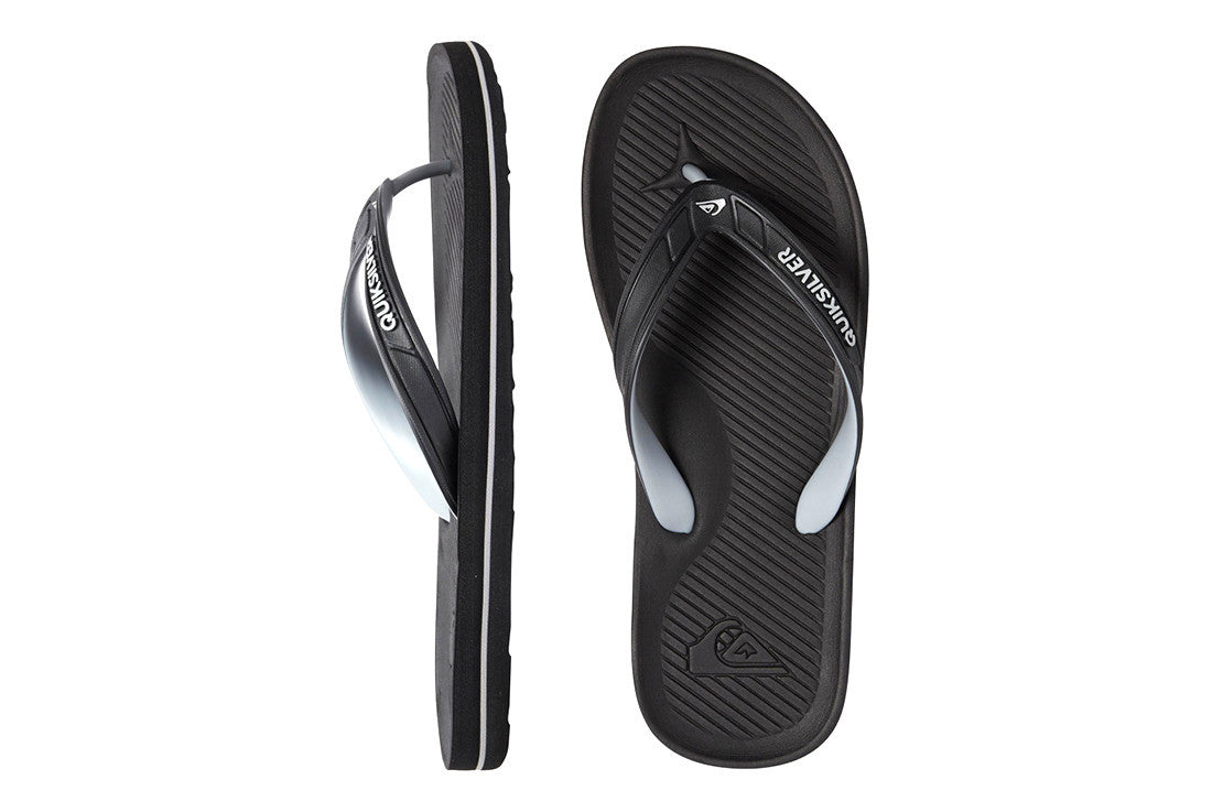 - Flexible, dual color, 3 point synthetic rubber strap with Quiksilver logos - Soft Hydrobound™ molded footbed with anatomically correctnarch support and angled grooves for traction and ventilation - Engineered blown rubber outsole incorporates multi angled logo lugs for added tractionFeaturing flexible dual-colour 3-point synthetic rubber strap with Quiksilver logos, soft Hydrobound™ moulded footbed, and rounded out with anatomically correct arch support and angled grooves for traction and ventilation.