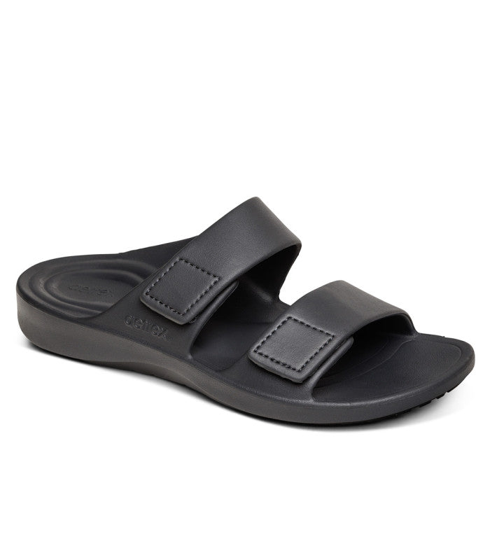 - Heel Height: 1.125"The Aetrex Orthotic System is Built-In to every pair: - Arch support helps to stabilize and align feet - Arch support helps to relieve common foot pain & plantar fasciitis - UltraSky™ to cushion and provide superior comfort - Contoured rearfoot to cradle your heel and relieve pressure - Support pod to help relieve forefoot pressure Details: - Adjustability: Hook & loop closures - Material: Lightweight UltraSky™ for comfort - Removable Insole: None Heel Height: 1.1" - Extreme cushioning and shock absorption to help prevent injury and provide unmatched support - Water-friendly construction, so light they float