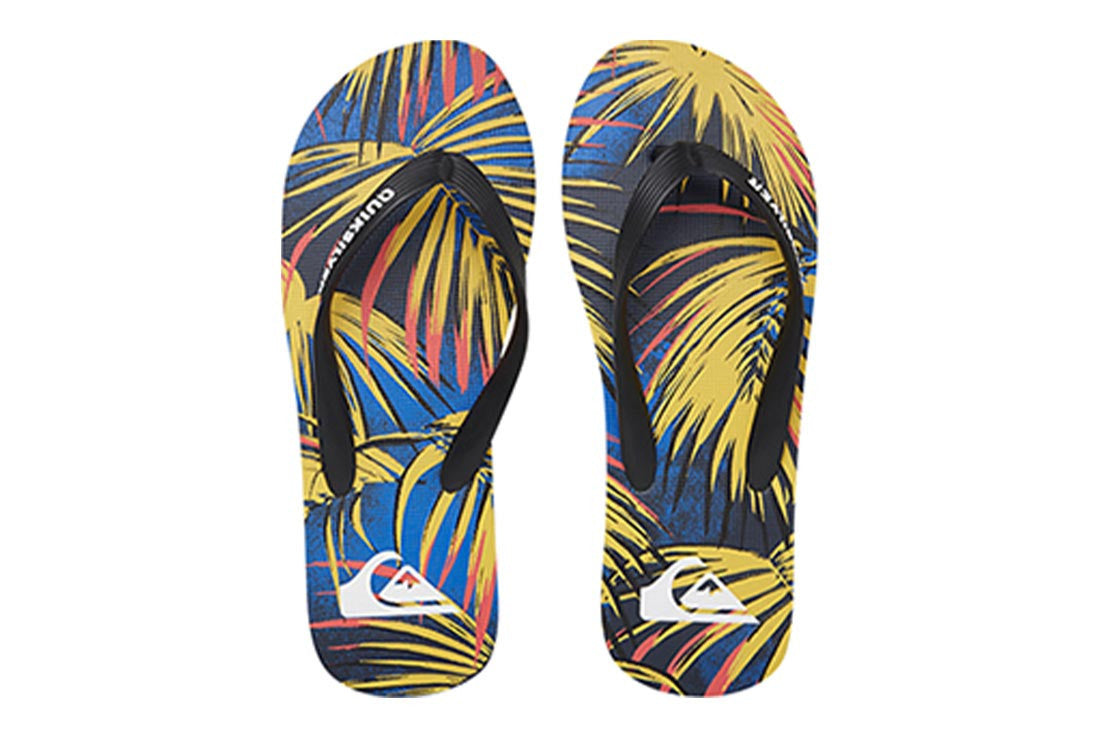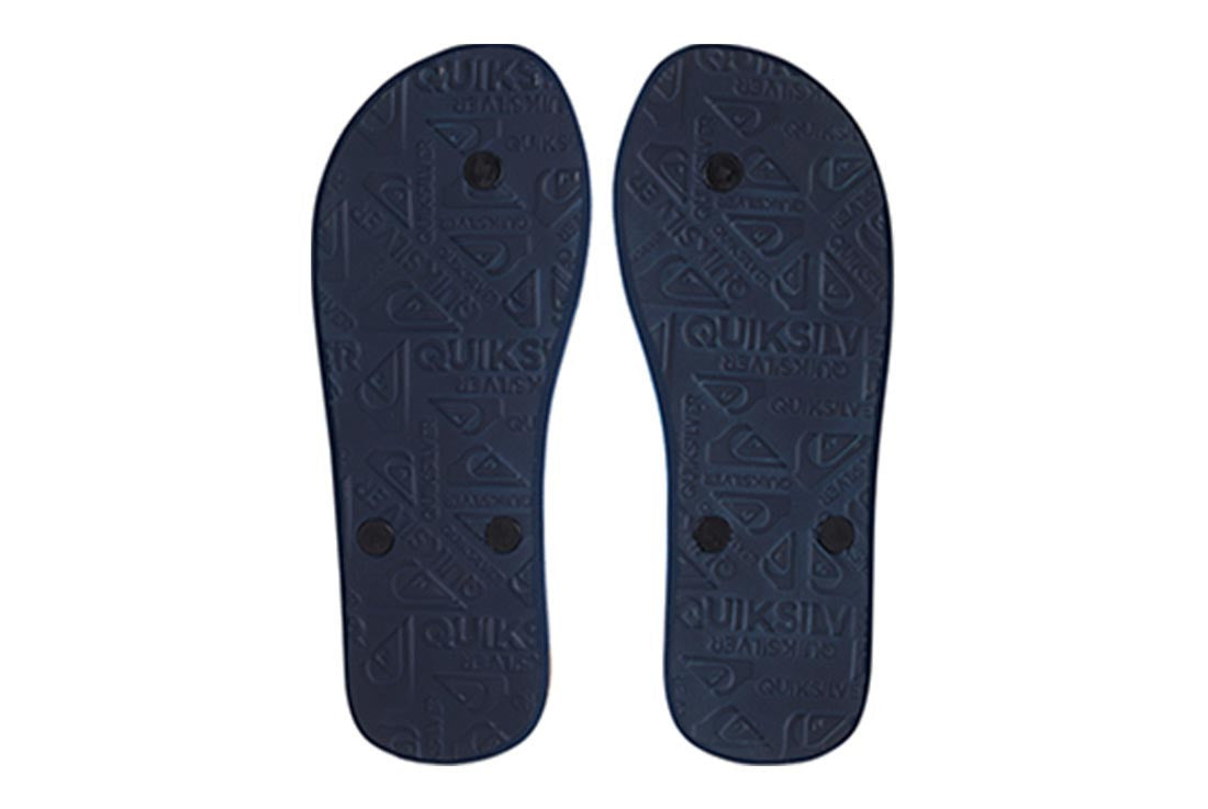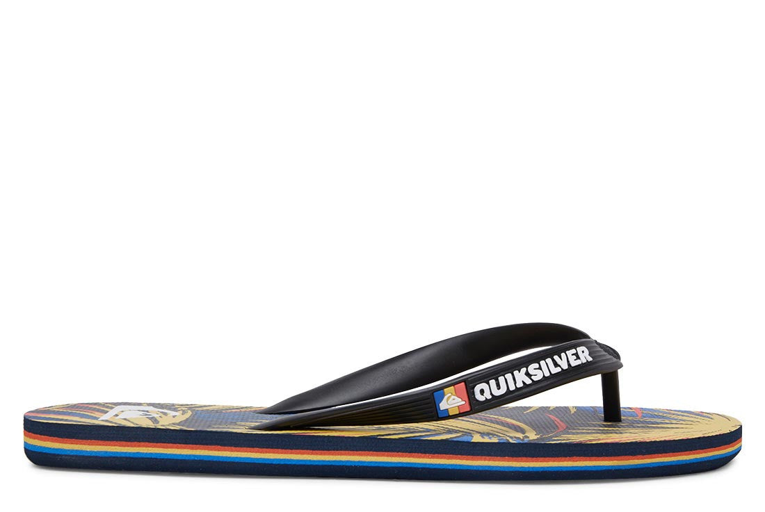- Flexible 3 point synthetic rubber strap with Quiksilver wordmark and fine mold Mountain Wave logo - Slip resistant textured footbed - Pop color pin lines in sidewall tying into colorway - Re-engineered blown rubber outsole incorporates multi anglednlogo lugs for added tractionQuiksilver Mens Molokai Thongs - Flip-flops for men featuring Quiksilver branding and fine mould mountain & wave logo, a slip-resistant textured insole.