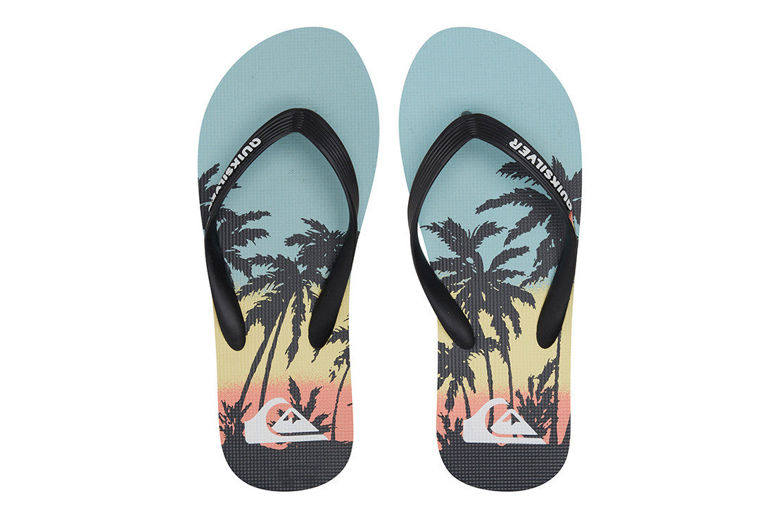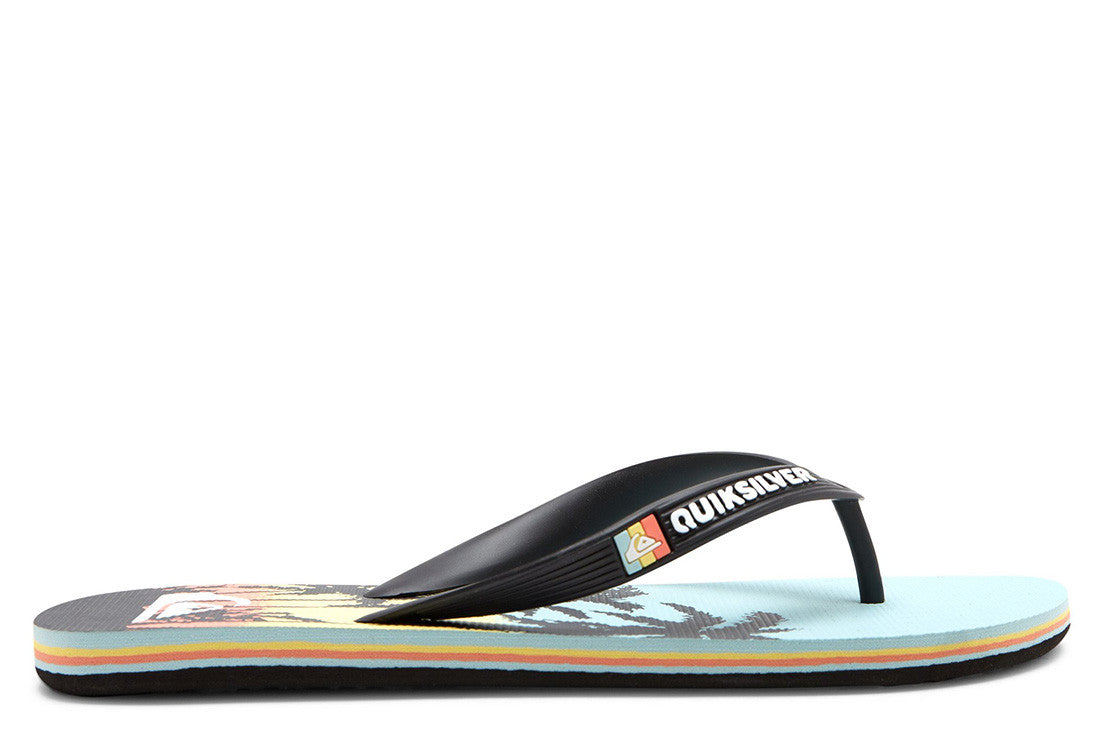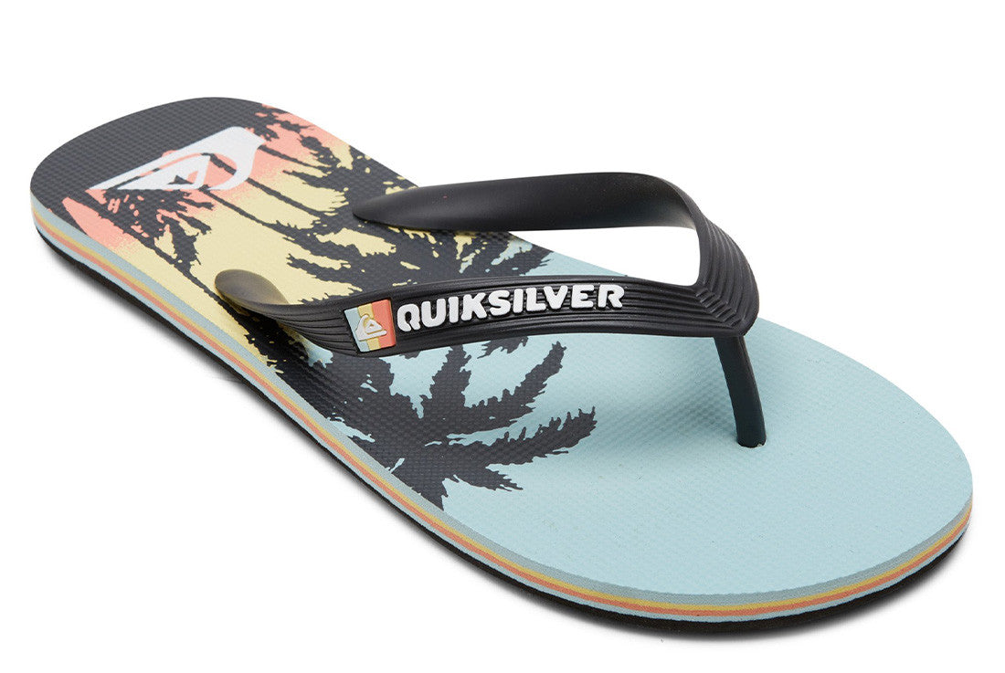 - Flexible 3 point synthetic rubber strap with Quiksilver wordmark and fine mold Mountain Wave logo - Slip resistant textured footbed - Pop color pin lines in sidewall tying into colorway - Re- engineered blown rubber outsole incorporates multi angled logo lugs for added traction Quiksilver Mens Molokai Thongs - Flip-flops for men featuring Quiksilver branding and fine mould mountain & wave logo, a slip-resistant textured insole.