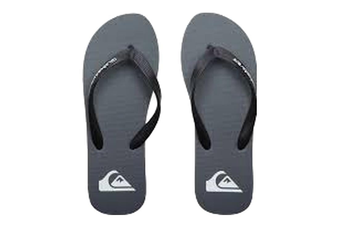 Quiksilver Mens Molokai Thongs - Flip-flops for men featuring Quiksilver branding and fine mould mountain & wave logo, a slip-resistant textured insole.- - Flexible 3 point synthetic rubber strap with Quiksilver wordmark and fine mold Mountain Wave logo                                                                                                       - Slip resistant textured footbed                                                                                                                         - Pop color pin lines in sidewall tying into colorway                                                                                                        - Re-engineered blown rubber outsole incorporates multi angled logo lugs for added traction
