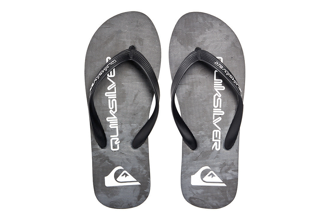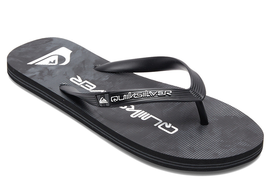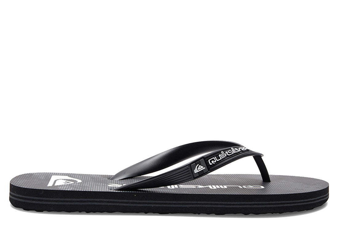 Gender :Mens Color :Anthracite - Stripe_2-  Flexible 3 point synthetic rubber strap with Quiksilver wordmark and fine mold Mountain Wave logo                                                                                                       -  Slip resistant textured footbed                                                                                                                         -  Pop color pin lines in sidewall tying into colorway                                                                                                        -  Re- engineered blown rubber outsole incorporates multi angled logo lugs for added traction                                                             Quiksilver Mens Molokai Thongs - Flip-flops for men featuring Quiksilver branding and fine mould mountain & wave logo, a slip-resistant textured insole.