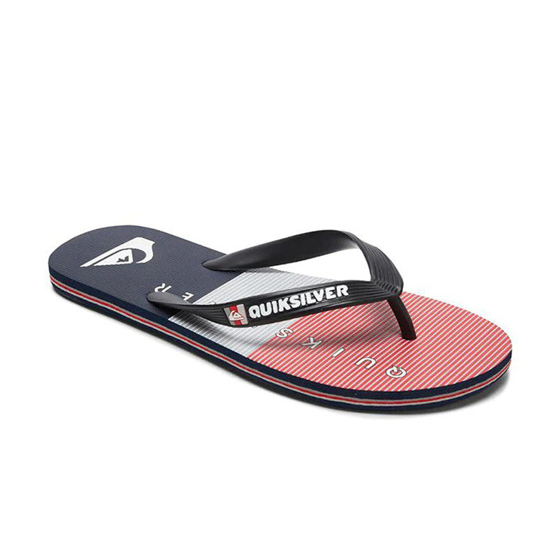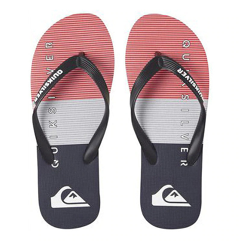 - Flexible 3 point synthetic rubber strap with Quiksilver wordmark and fine mold Mountain Wave logo - Slip resistant textured footbed - Pop color pin lines in sidewall tying into colorway - Re-engineered blown rubber outsole incorporates multi anglednlogo lugs for added tractionFeaturing flexible 3-point synthetic rubber strap, Quiksilver branding and fine mould mountain & wave logo, and rounded out with a slip-resistant textured footbed.