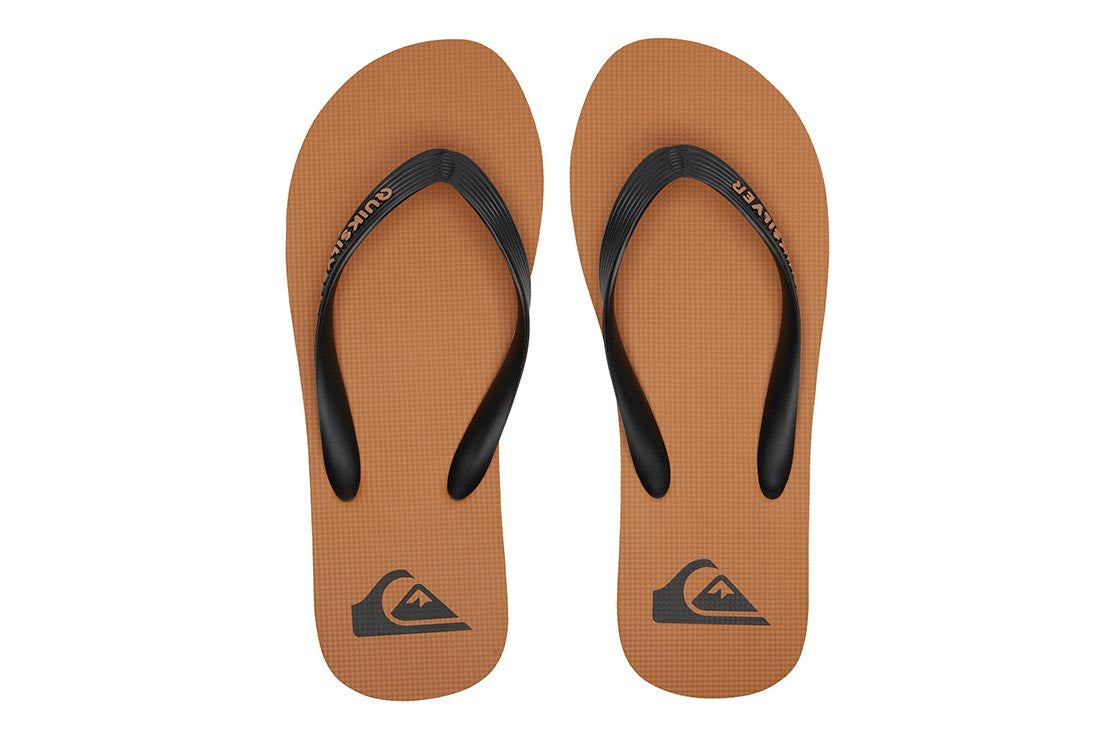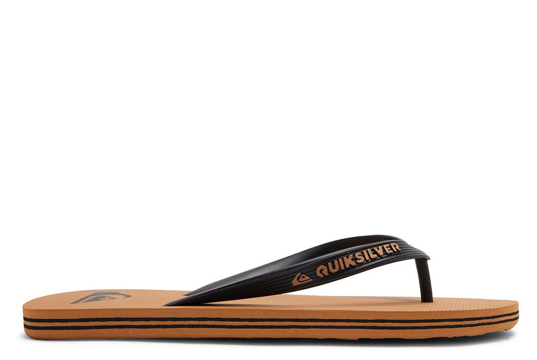 - Flexible 3 point synthetic rubber strap with Quiksilver wordmark and fine mold Mountain Wave logo - Slip resistant textured footbed - Pop color pin lines in sidewall tying into colorway - Re-engineered blown rubber outsole incorporates multi anglednlogo lugs for added tractionQuiksilver Mens Molokai Thongs - Flip-flops for men featuring Quiksilver branding and fine mould mountain & wave logo, a slip-resistant textured insole.
