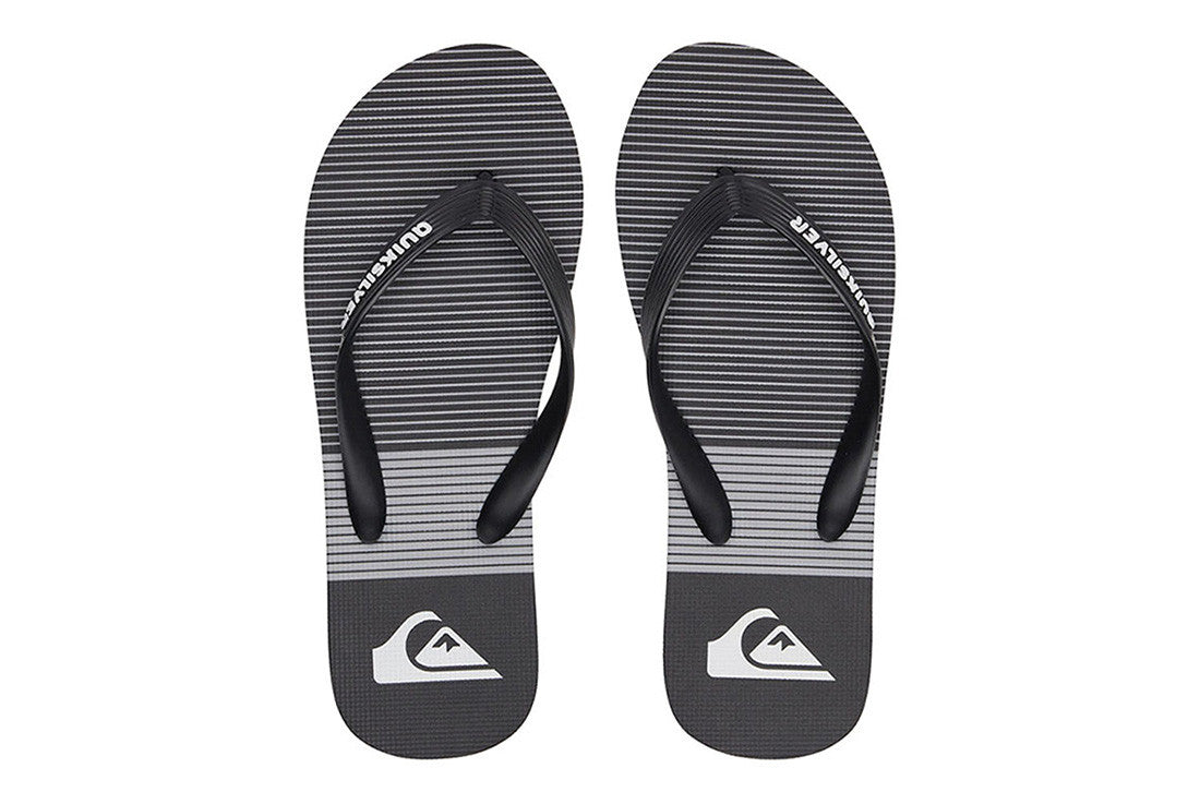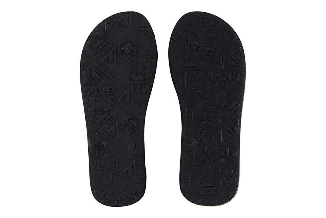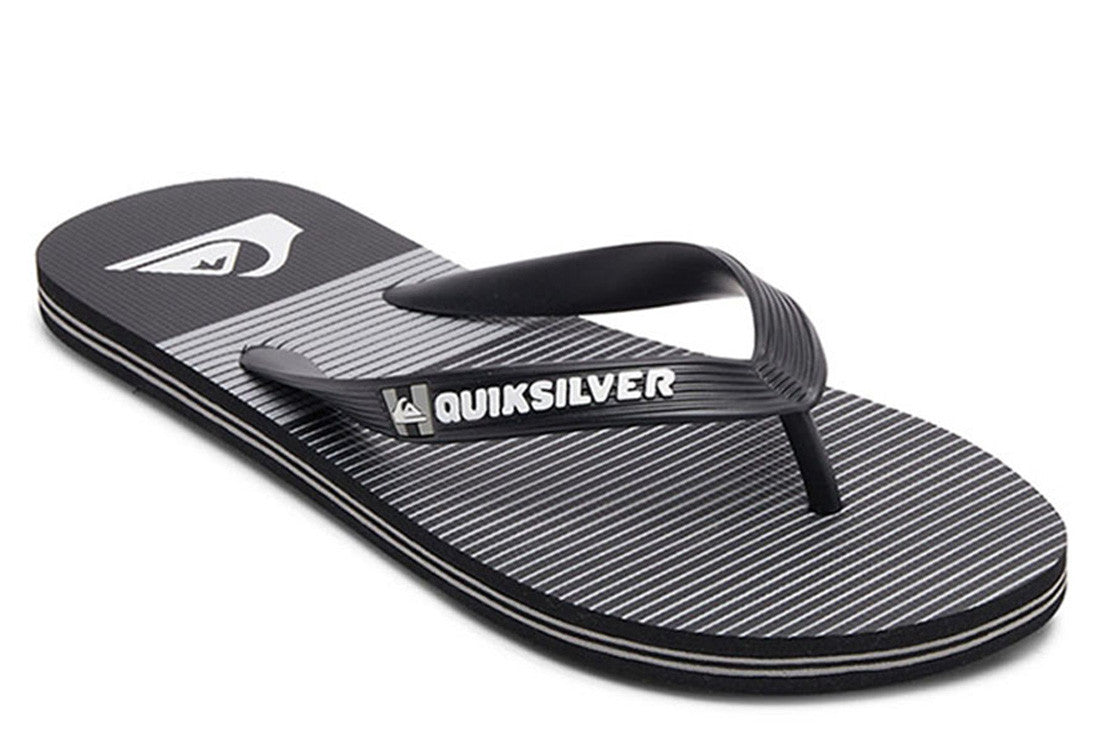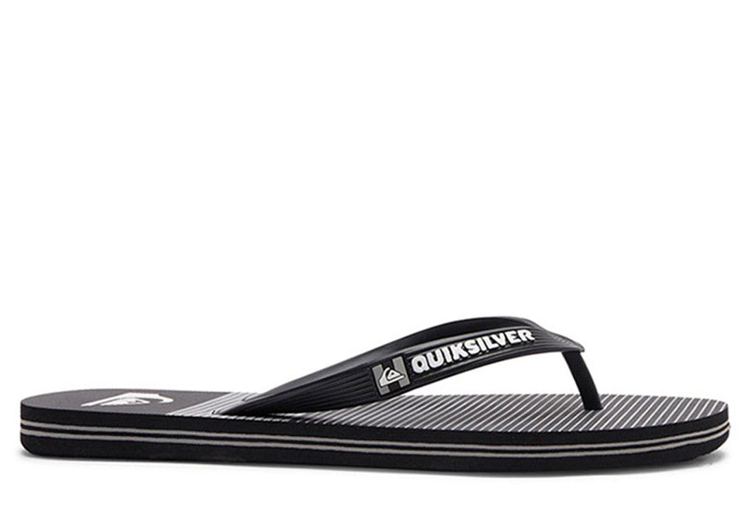 - Flexible 3 point synthetic rubber strap with Quiksilver wordmark and fine mold Mountain Wave logo - Slip resistant textured footbed - Pop color pin lines in sidewall tying into colorway - Re-engineered blown rubber outsole incorporates multi anglednlogo lugs for added tractionQuiksilver Mens Molokai Thongs - Flip-flops for men featuring Quiksilver branding and fine mould mountain & wave logo, a slip-resistant textured insole.