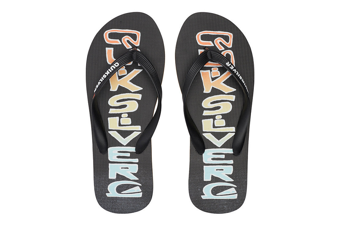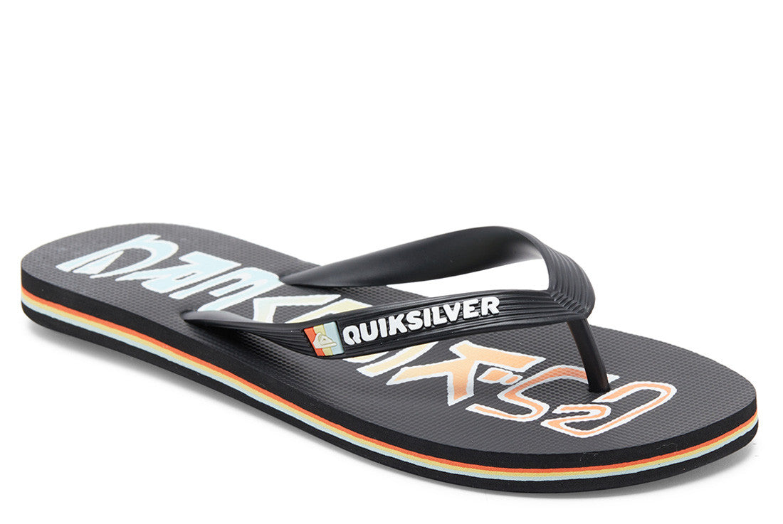 - Flexible 3 point synthetic rubber strap with Quiksilver wordmark and fine mold Mountain Wave logo - Slip resistant textured footbed - Pop color pin lines in sidewall tying into colorway - Re- engineered blown rubber outsole incorporates multi angled logo lugs for added traction Quiksilver Mens Molokai Thongs - Flip-flops for men featuring Quiksilver branding and fine mould mountain & wave logo, a slip-resistant textured insole.