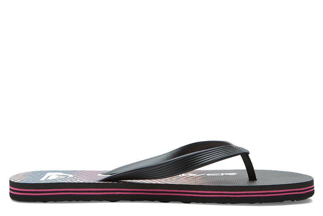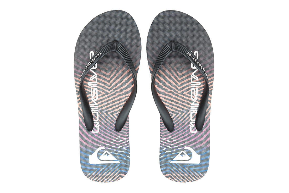 Gender :Mens Color :Black/Black/Pink - Combo- Flexible 3 point synthetic rubber strap with Quiksilver wordmark and fine mold Mountain Wave logo - Slip resistant textured footbed - Pop color pin lines in sidewall tying into colorway - Re- engineered blown rubber outsole incorporates multi angled logo lugs for added traction Quiksilver Mens Molokai Thongs - Flip-flops for men featuring Quiksilver branding and fine mould mountain & wave logo, a slip-resistant textured insole.