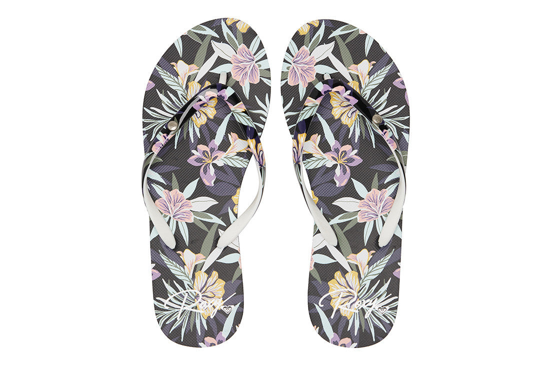 - Product Type: Sandal - Upper: Soft TPU printed upper with metal logo pin - Footbed: Rubber footbed with graphic - Outsole: Rubber with Roxy heritage art- Product Type: Sandal- Upper: Soft TPU printed upper with metal logo pin- Footbed: Rubber footbed with graphic- Outsole: Rubber with Roxy heritage art