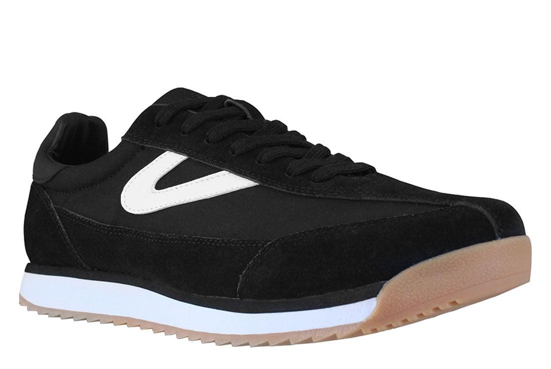 You’ll be sporty & stylish, in these retro-inspired sneakers that are as comfortable as they are cool.- - Leather, Suede, and Textile Combo Uppern- Lace-up closure, laces includedn- Rubber outsole (50% natural gum rubber)n- EcoOrtholite insole (sustainably made with recycled material)