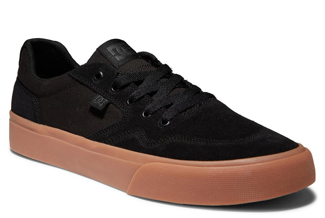 - Leather uppern- Toe cap with stitch detailn- Mesh liningn- Abrasion-resistant sticky rubber outsolen- DCs trademarked Pill Pattern treadn- Vulcanized construction for great board-feel and sole flexDC Rowlan Shoes for Men - Mens shoes with a suede and canvas upper in the quarter panel.